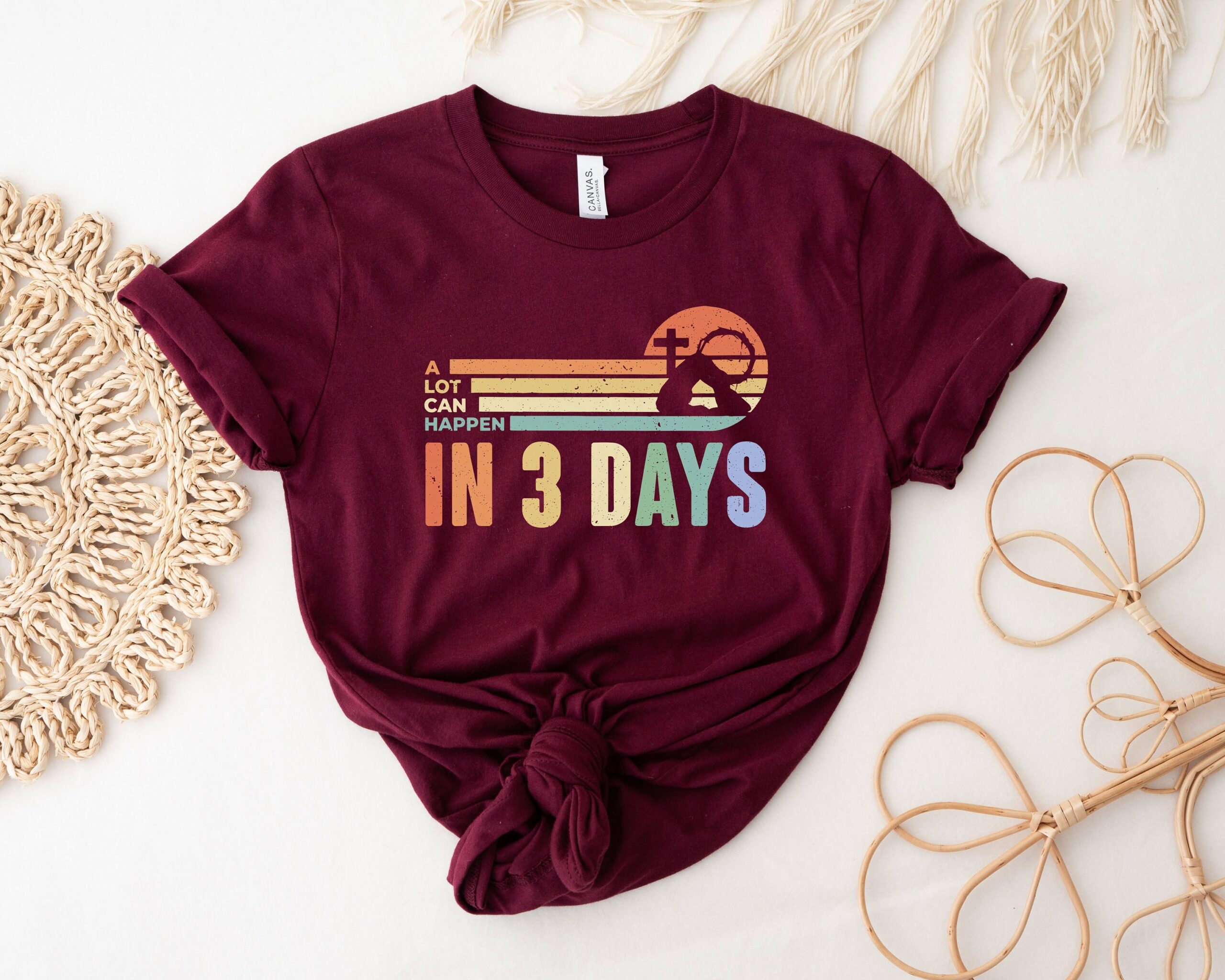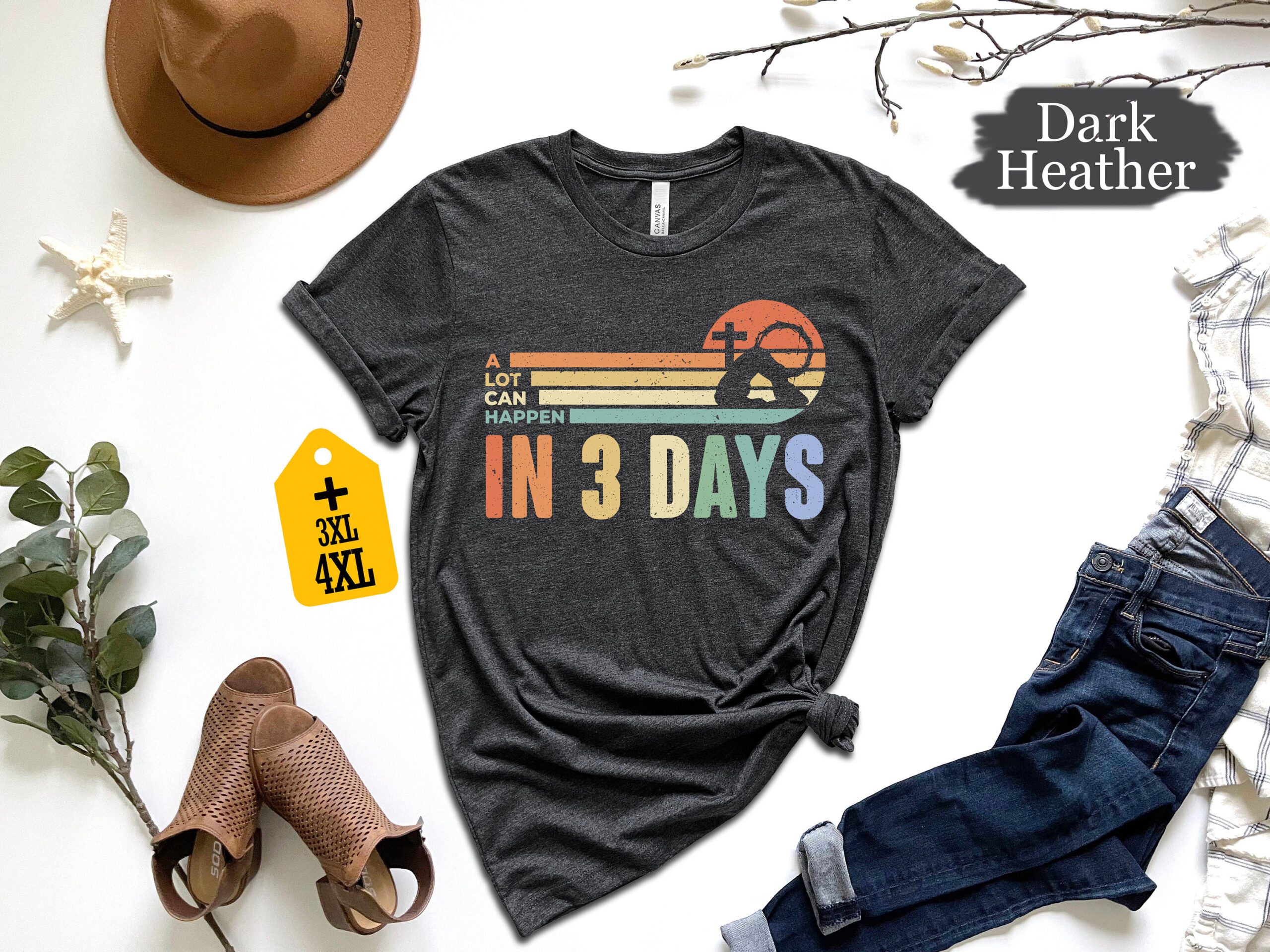 - Viral Status: This design is already generating serious buzz. Specifically, the A Lot Can Happens In 3 Days Shirt, Retro Easter Day Shirt, He Is Risen Shirt, Jesus Shirt, Christian Gift, Easter Family Shirt is being shared widely as the must-have Easter piece of the season.