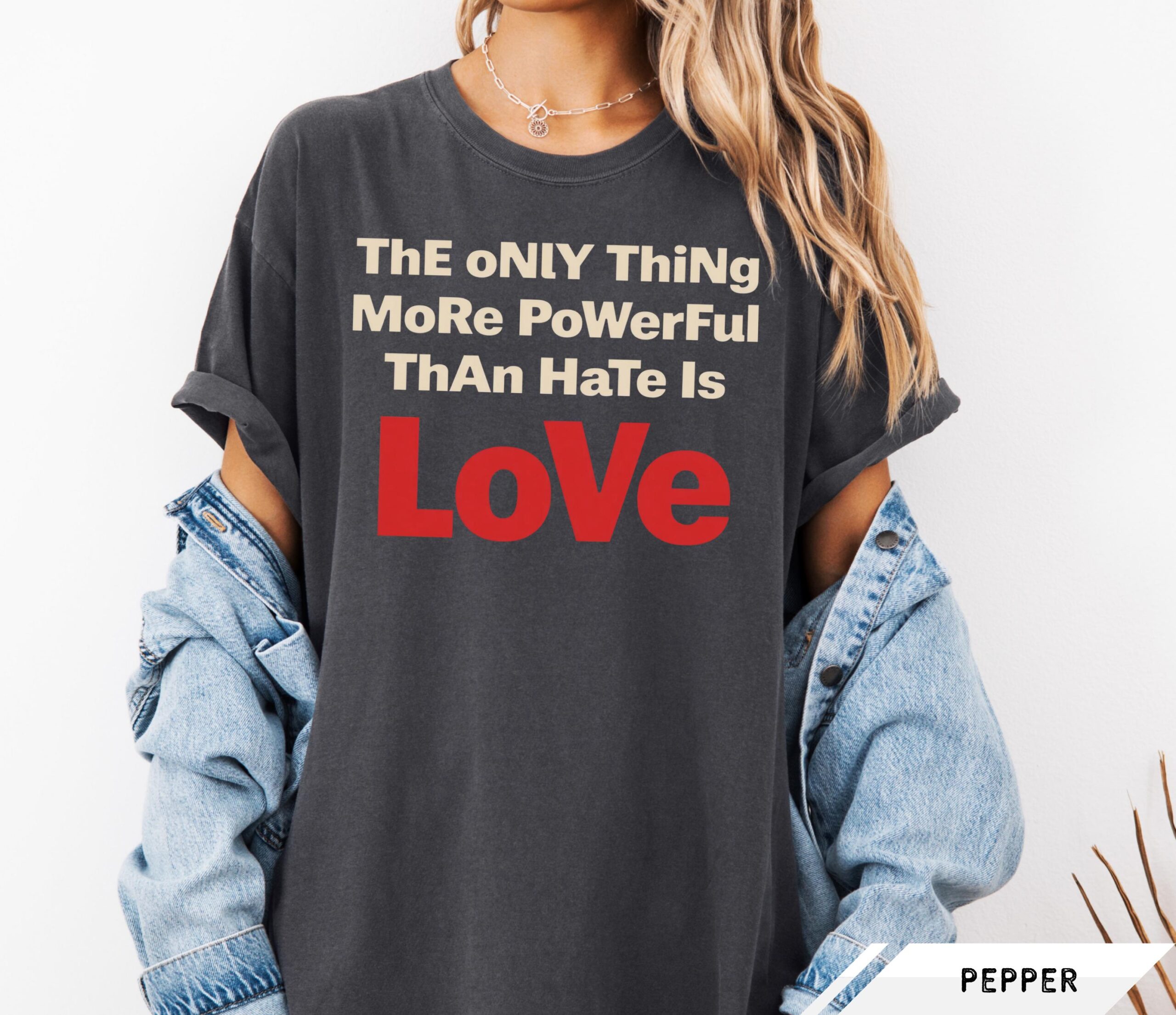 Moreover, the garment-dyed process gives each tee a rich, retro appearance that sets it apart from ordinary graphic shirts. With its eye-catching design and powerful message, this shirt serves not only as a fashion statement but also as a conversation starter, encouraging dialogue about love and understanding in a divided world.
