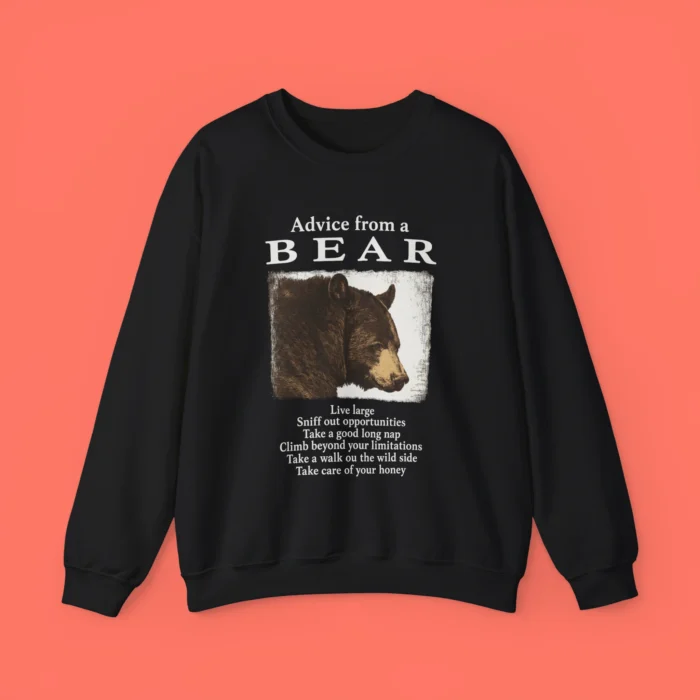 Overall, the Advice From A Bear Shirt isn’t just a piece of clothing; it’s a lifestyle reminder interwoven with humor. Wear it on your next adventure or simply as a cheerful nod to living boldly and taking care of your honey.