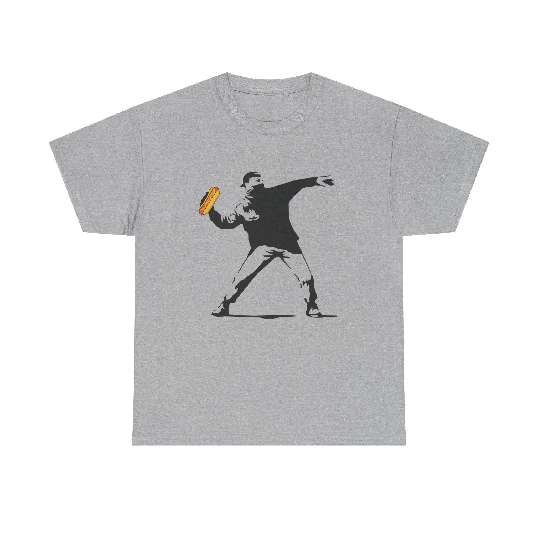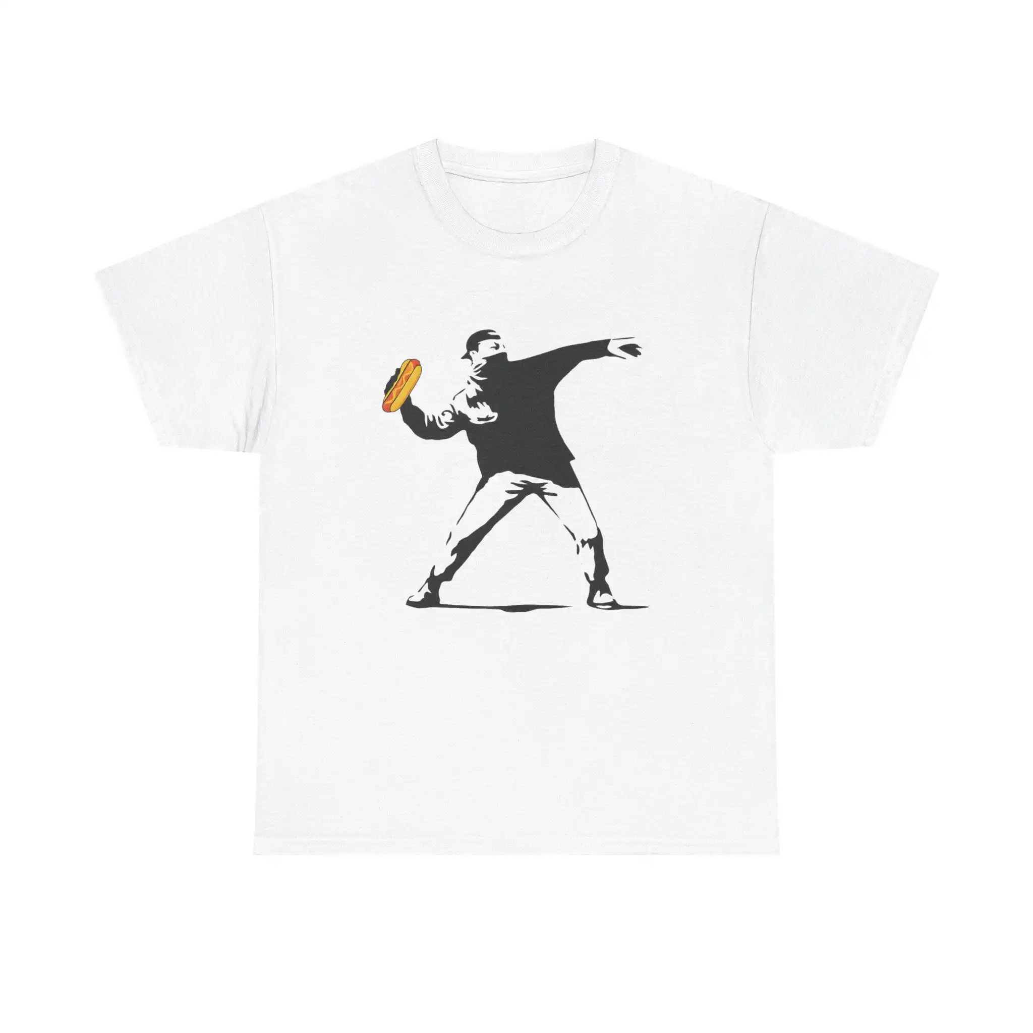 No matter the setting, the Banksy Inspired Sandwich Thrower Shirt is versatile enough to fit seamlessly into your wardrobe. Pair it with jeans for a laid-back look or dress it up with a jacket for a night out. Furthermore, this shirt appeals to a wide audience—activists, food lovers, and art fans will all appreciate its unique flair.