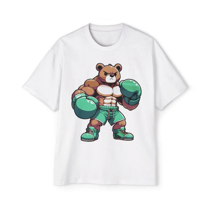 - Playful graphic featuring a cheerful teddy bear ready to rumble.