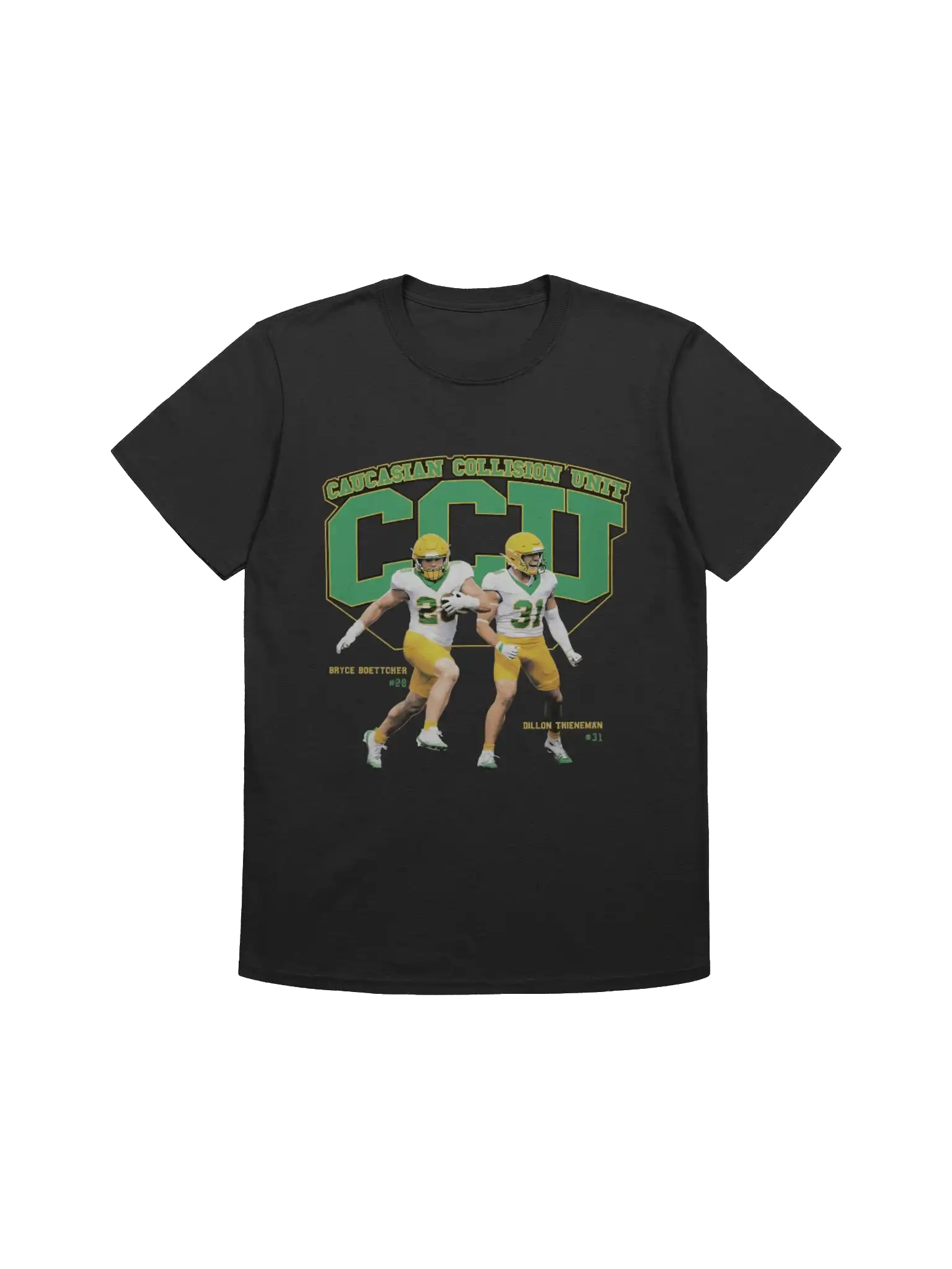 In summary, the Caucasian Collision Unit Bryce Boettcher & Dillon Thieneman Shirt is the ultimate addition to your collection. With its fun design and comfortable fit, you won’t just wear it—you’ll make a statement. So grab yours today and let your style reflect the vibrant energy of this iconic pair!