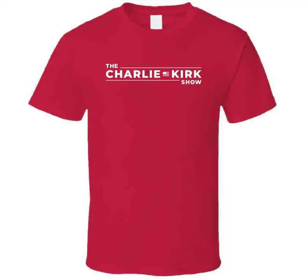 - Graphic/print details: Bold and vibrant graphics that celebrate Charlie Kirk’s show.
