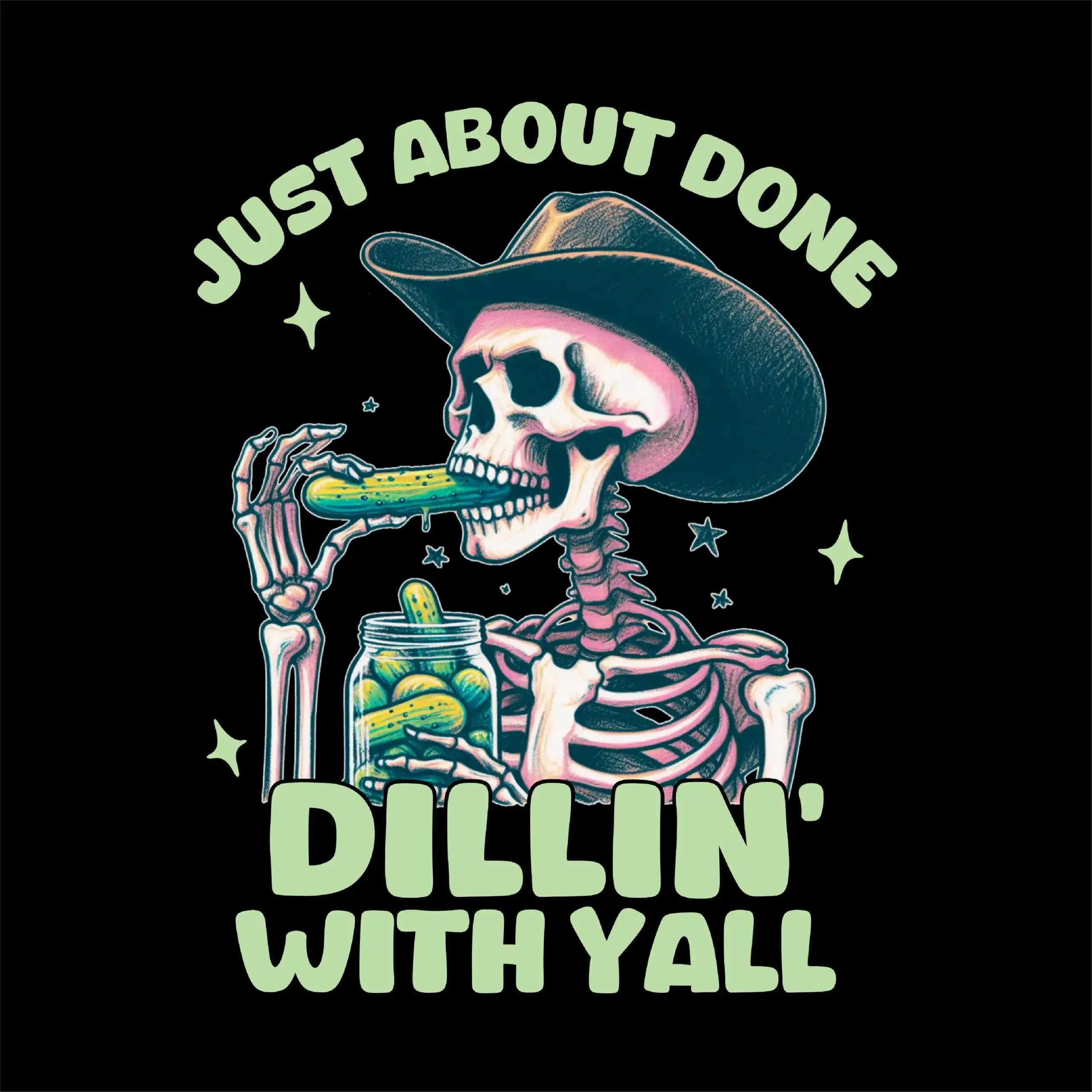 - Graphic/print details: Unique cowboy skeleton pickle design that’s sure to turn heads.