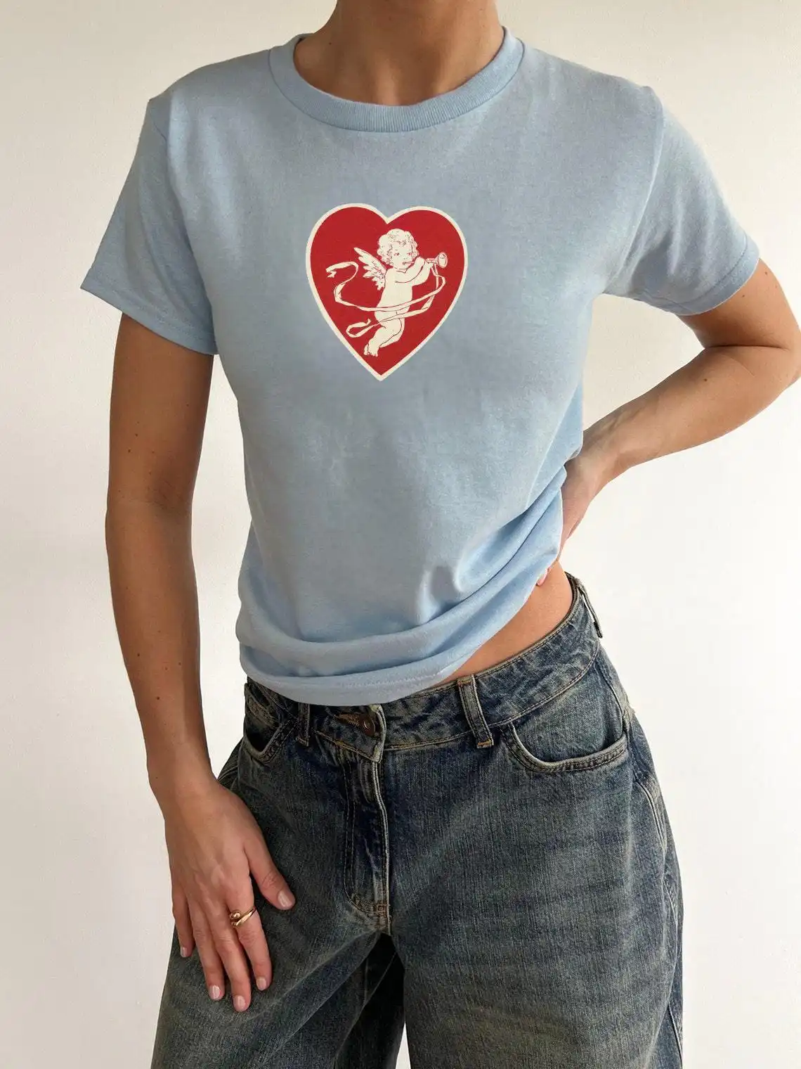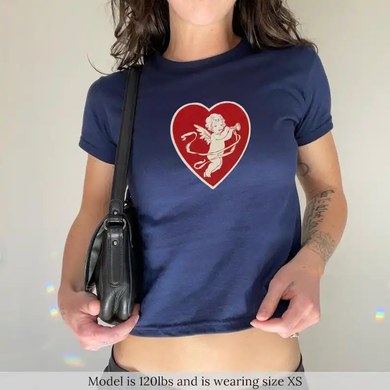 Cupid in Red Heart Baby Tee – Vintage Y2K Women’s Shirt
