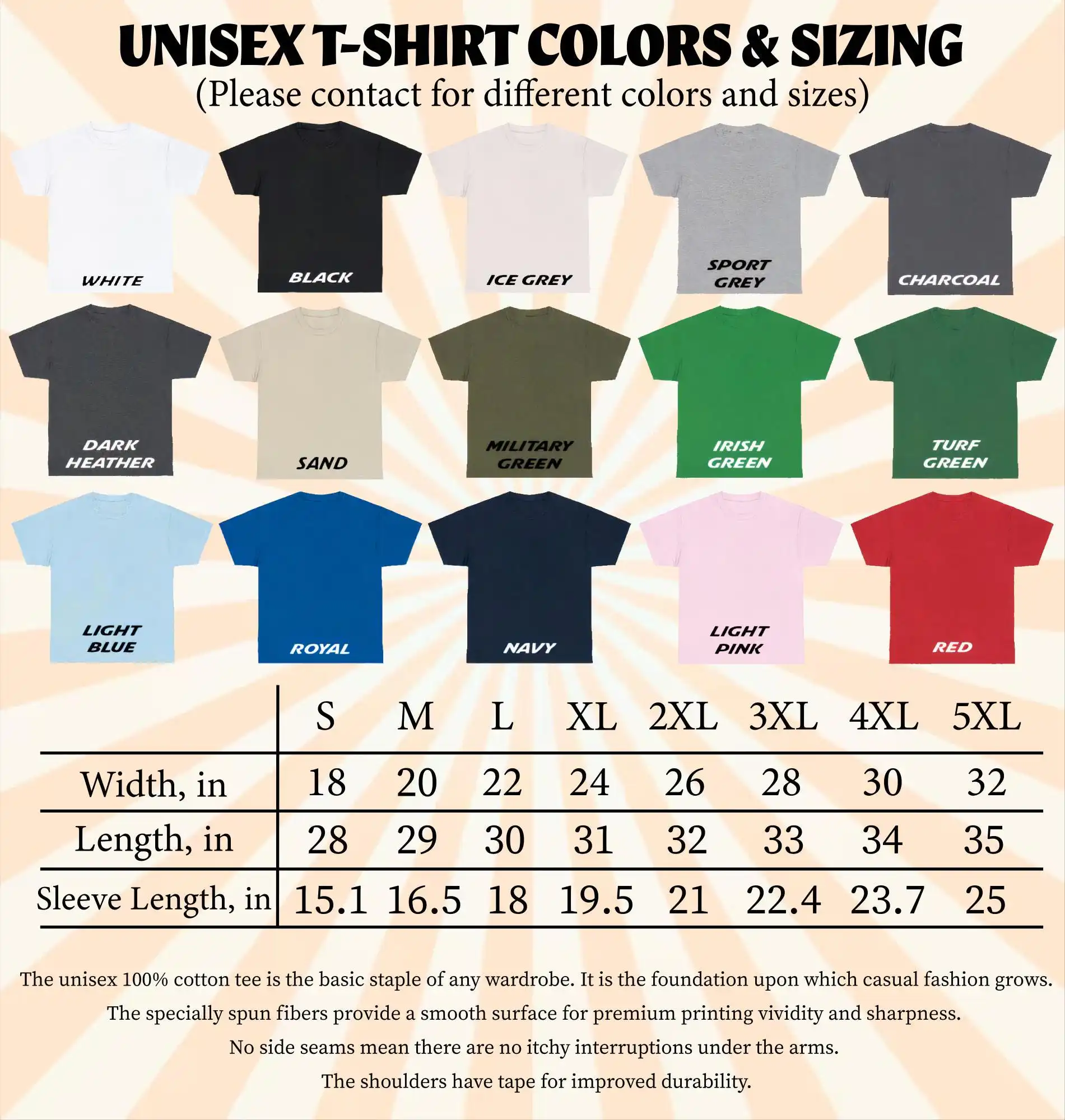 UNISEX T-SHIRT SIZE GUIDE