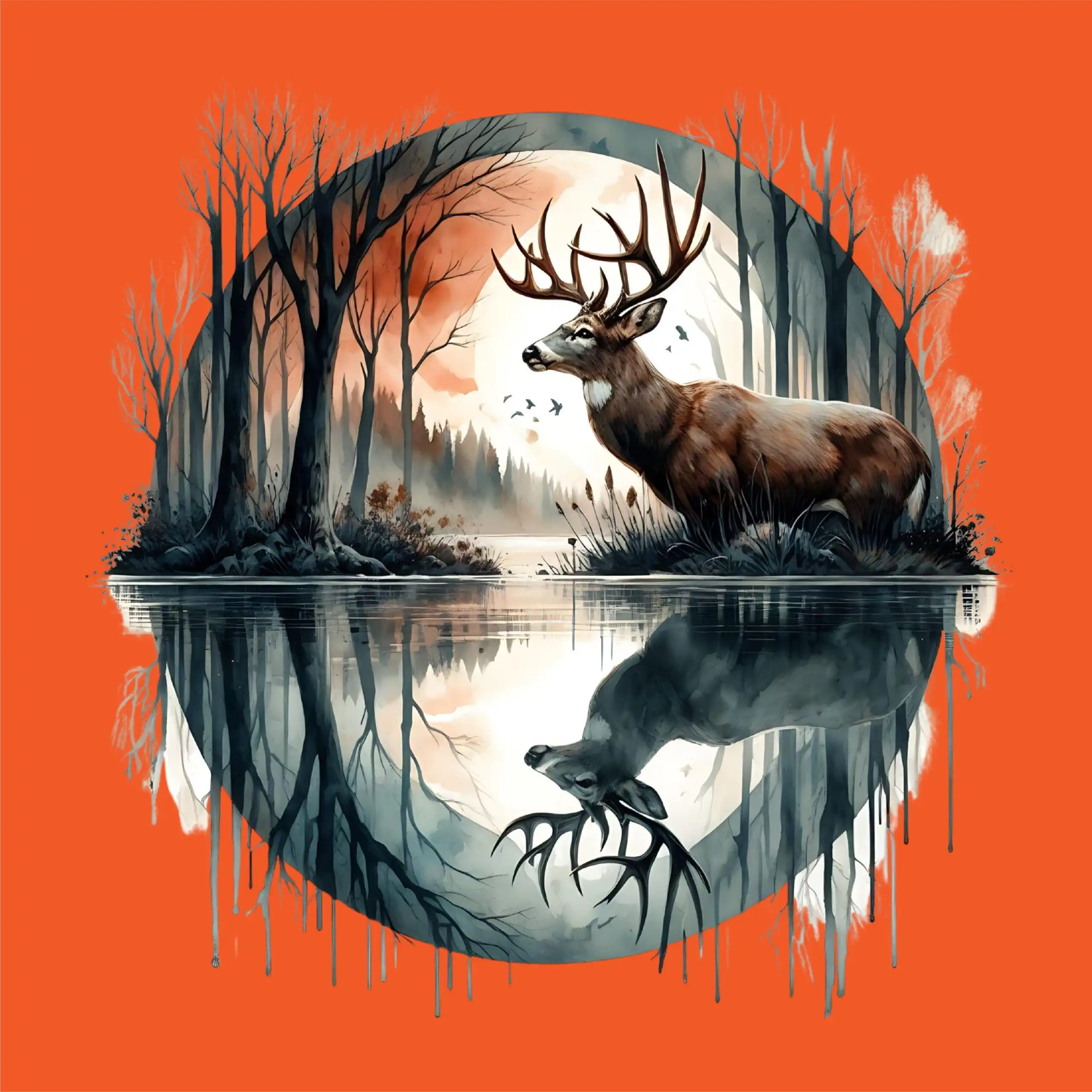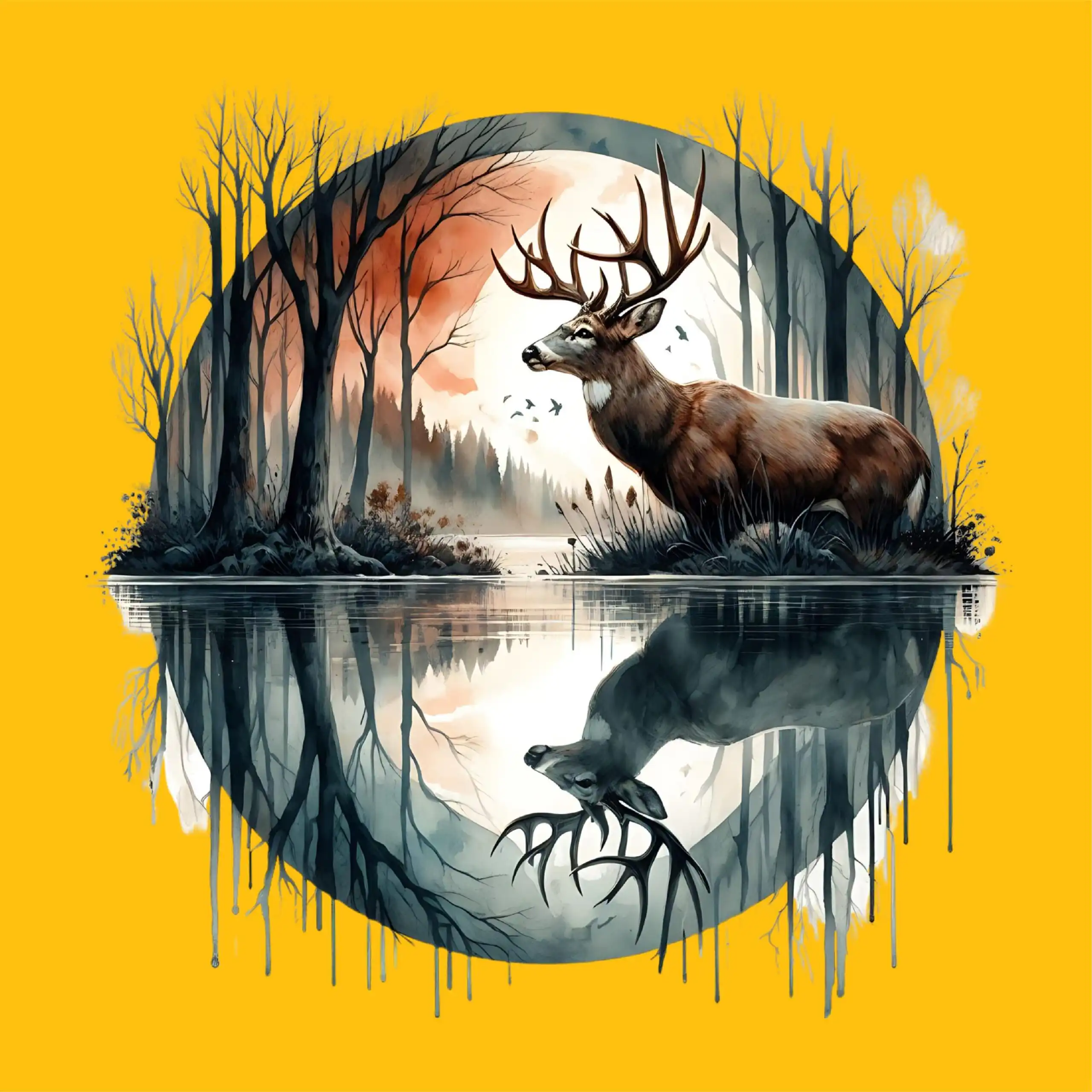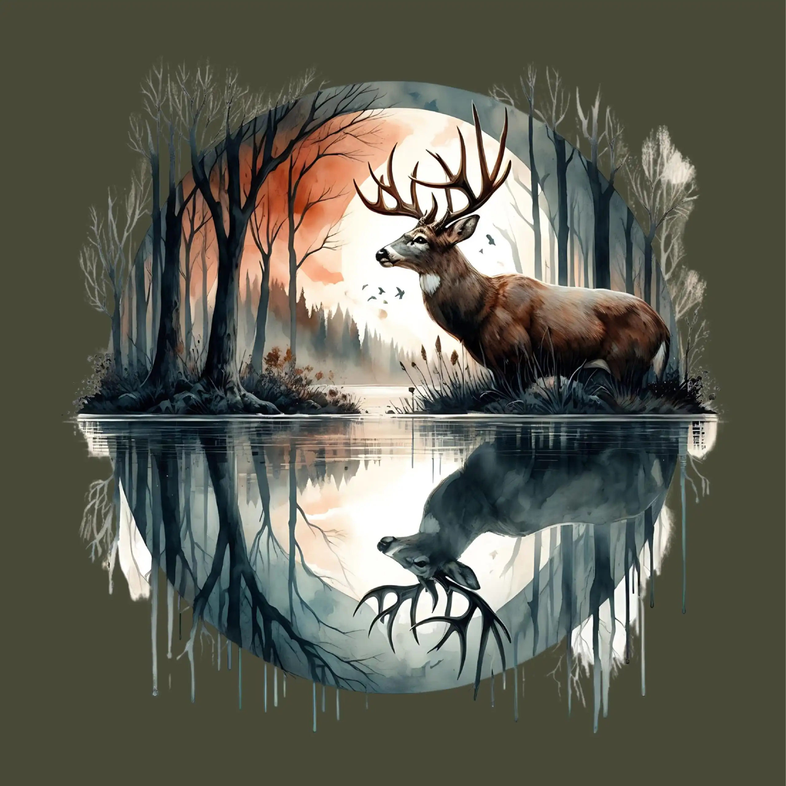 Deer Buck Moonlight Reflection Tee – Soft Cotton Forest Shirt