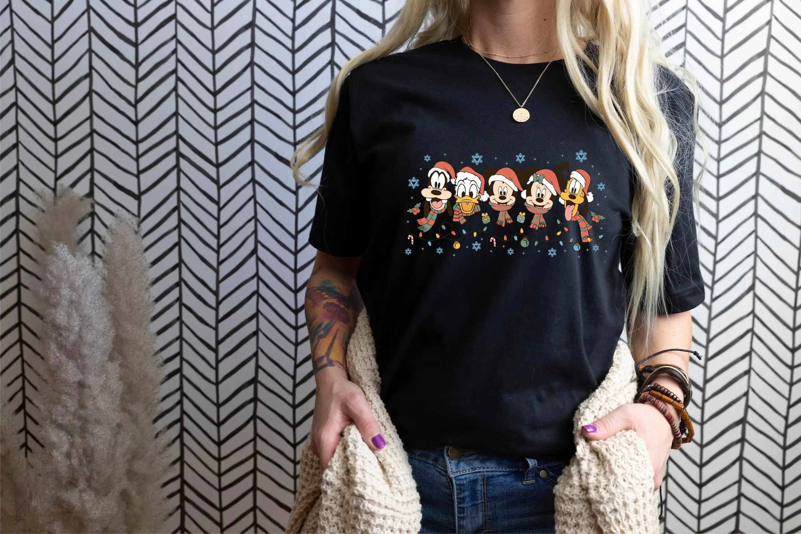 Made from high-quality materials, this shirt feels soft against your skin and allows for easy movement. It’s perfect for cozy family gatherings, festive outings, or simply lounging at home while enjoying your favorite holiday movies. Anyone who loves Disney or festive fashion will adore this shirt!