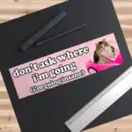 Looking to add some humor to your ride or belongings? Check out the Don’t Ask Where I’m Going (Insane) Bumper Sticker AND Magnet! This funny meme sticker measures 8.7” x 2.7” and is made from durable, waterproof vinyl. Plus, its vibrant colors and witty message make it a perfect conversation starter. Easy to apply and perfect for any occasion, it’s a fun way to showcase your personality!