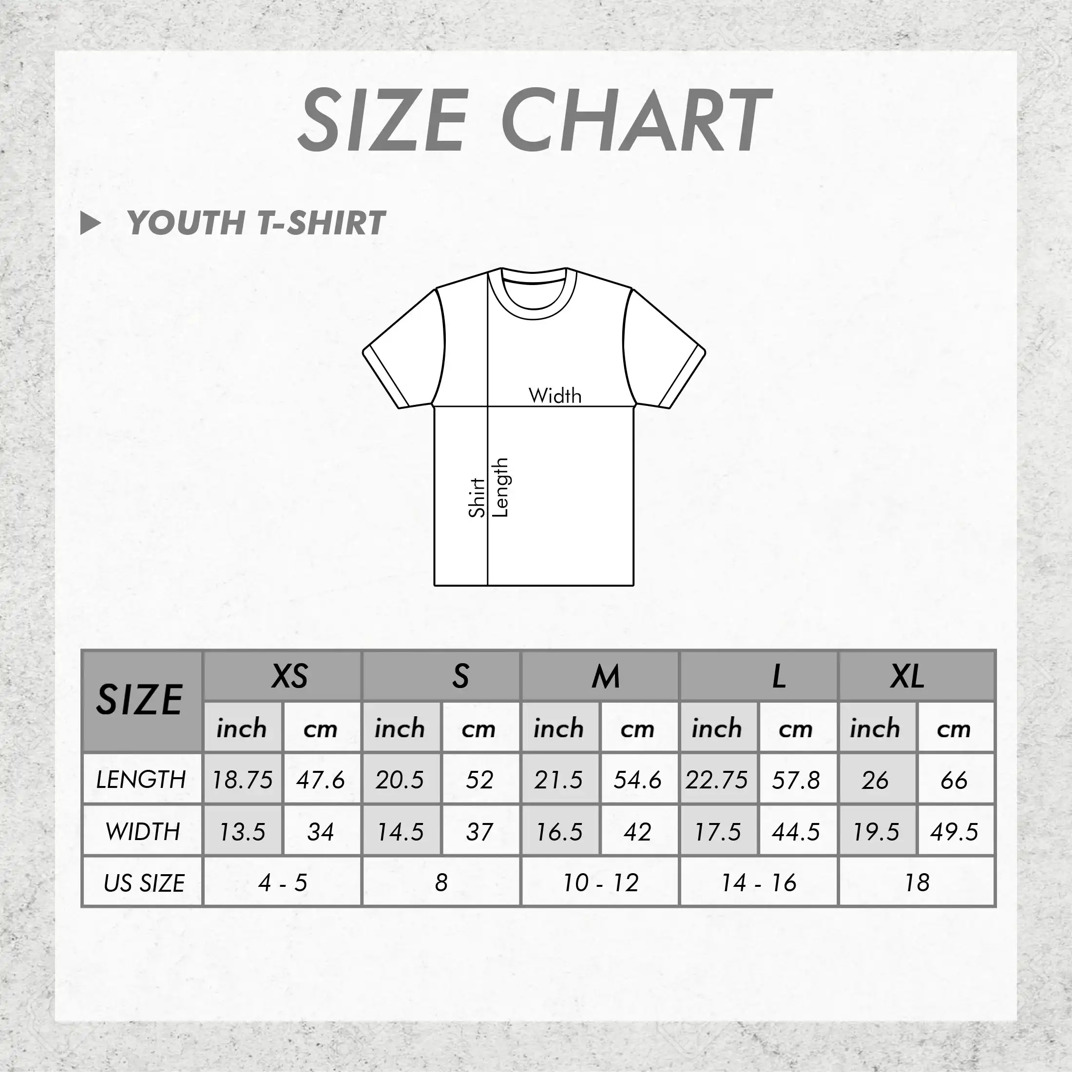 UNISEX T-SHIRT SIZE GUIDE
