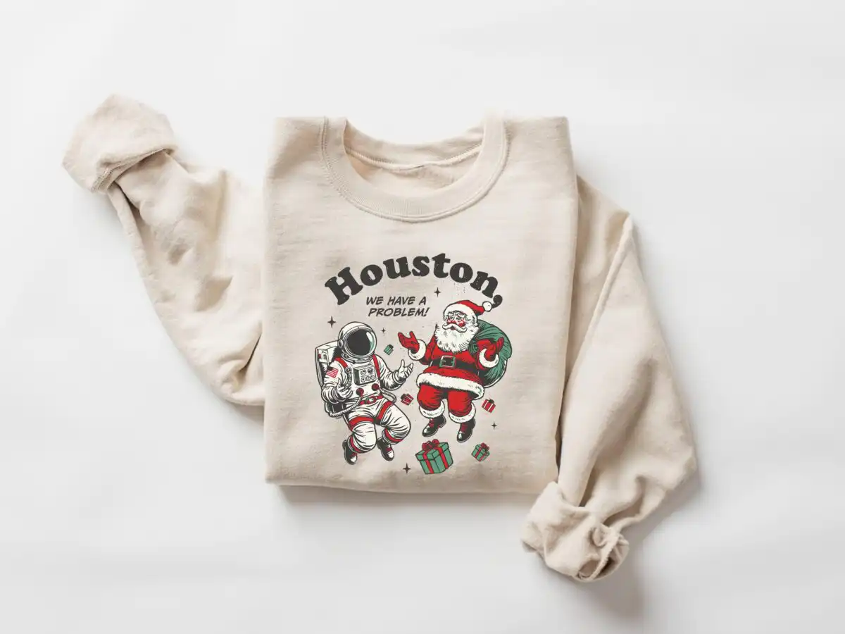 Get ready to spread some holiday cheer with the Funny Astronaut Santa Christmas Sweatshirt, Houston We Have a Problem. This playful sweatshirt combines festive spirit with a touch of cosmic humor, making it the perfect addition to your winter wardrobe.