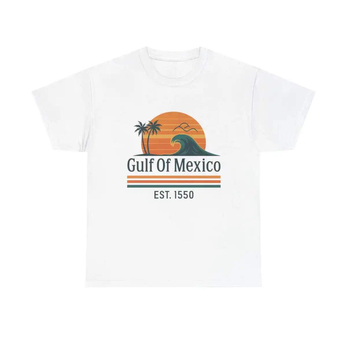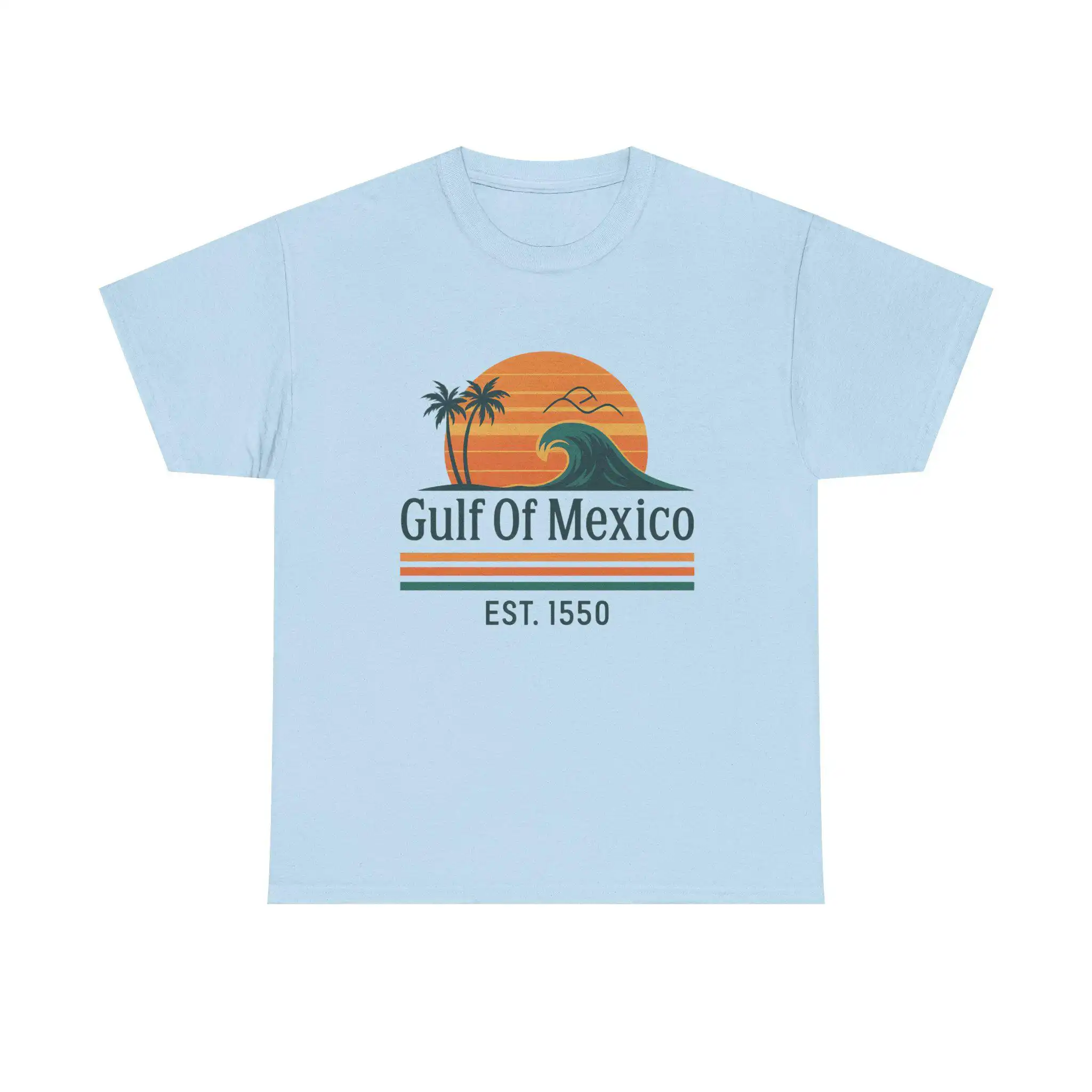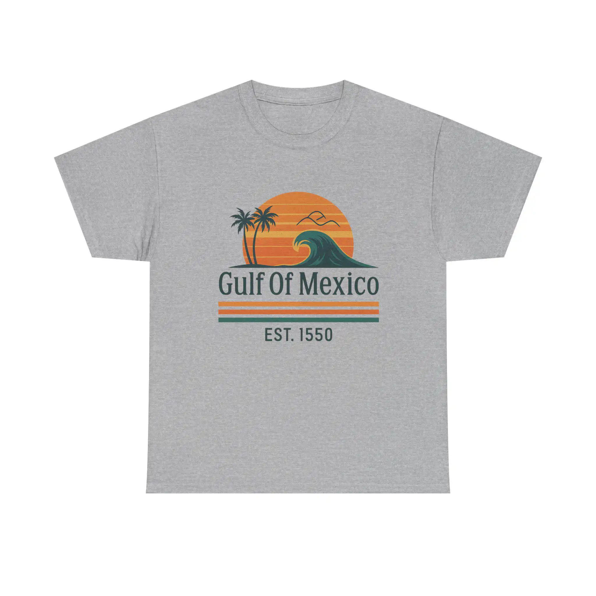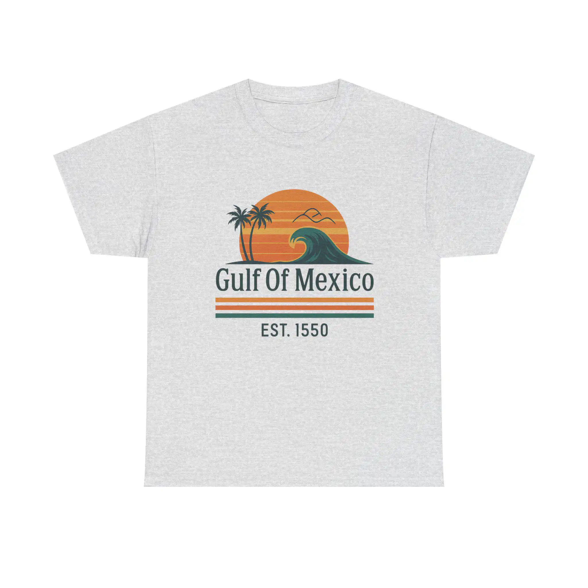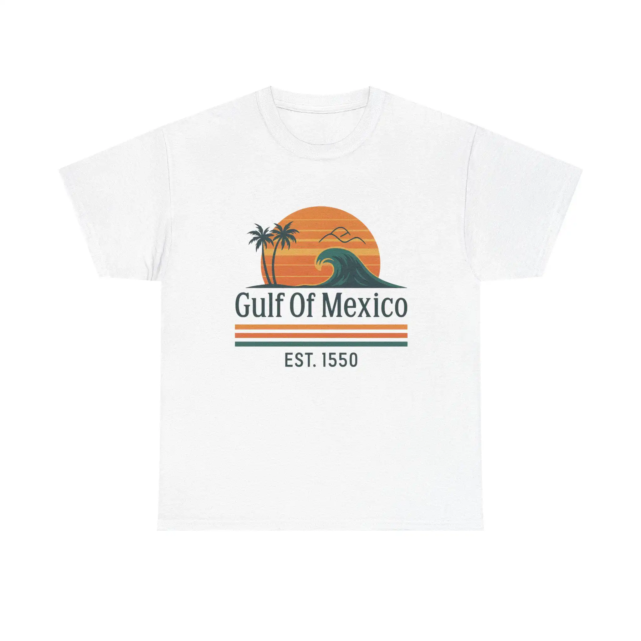 Elevate your casual wardrobe with the Gulf of Mexico Shirt, Retro Wave Palm Tee, Est. 1550 Beach T-Shirt for Women, Mexico Beach Vacation Top, Vintage Sunset Coastal Graphic. This stylish tee captures the essence of laid-back beach days, making it a must-have for sun chasers and coastal dreamers alike.