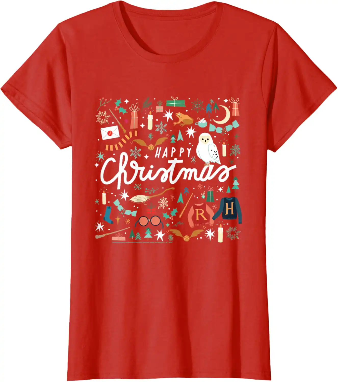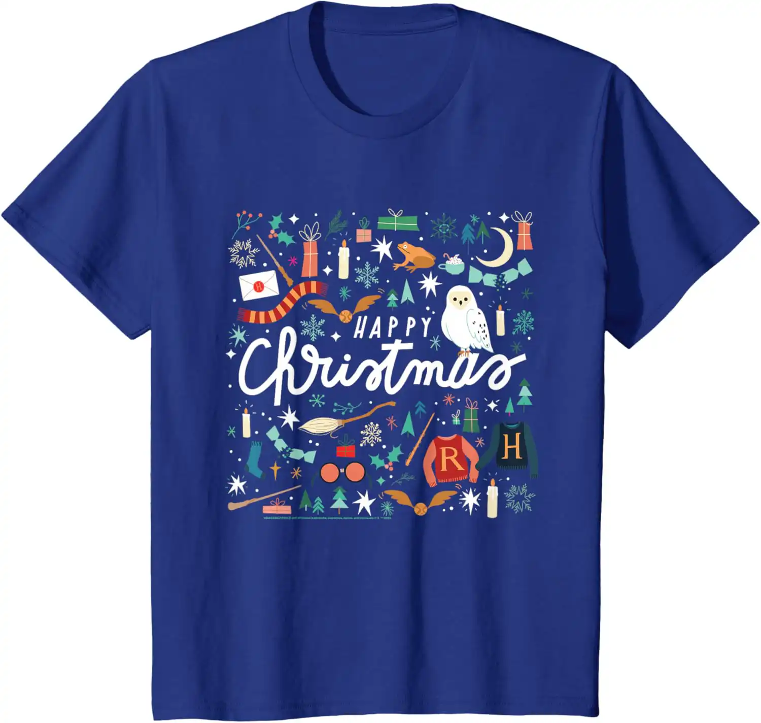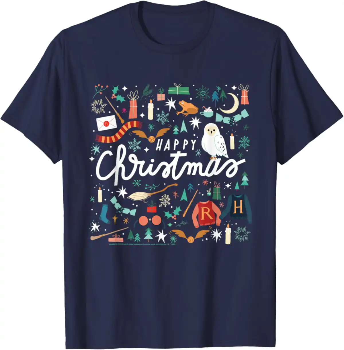 Get ready to celebrate the holiday season in style with the Harry Potter Happy Christmas, Hedwig, Golden Snitch T-Shirt! This officially licensed piece of Harry Potter merchandise brings a touch of magic to your wardrobe, making it perfect for fans of all ages.