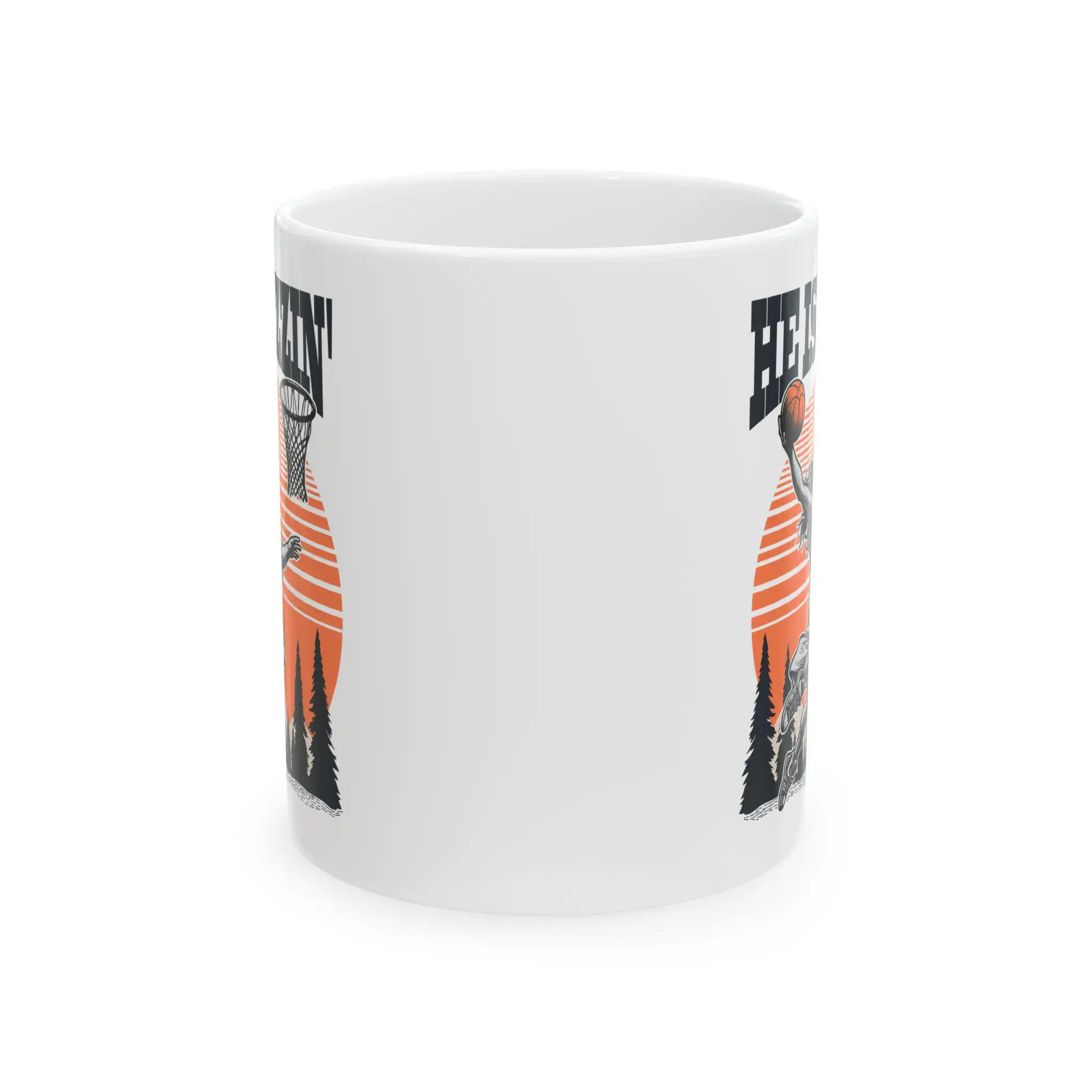 This mug features a captivating graphic of Jesus shooting hoops, showcasing a blend of faith and fun that resonates with many. The clean white ceramic design ensures that the vibrant print stands out, making it a stylish addition to your kitchen or office. Moreover, its classic shape and rounded corners offer a comfortable grip, making every sip a delight.
