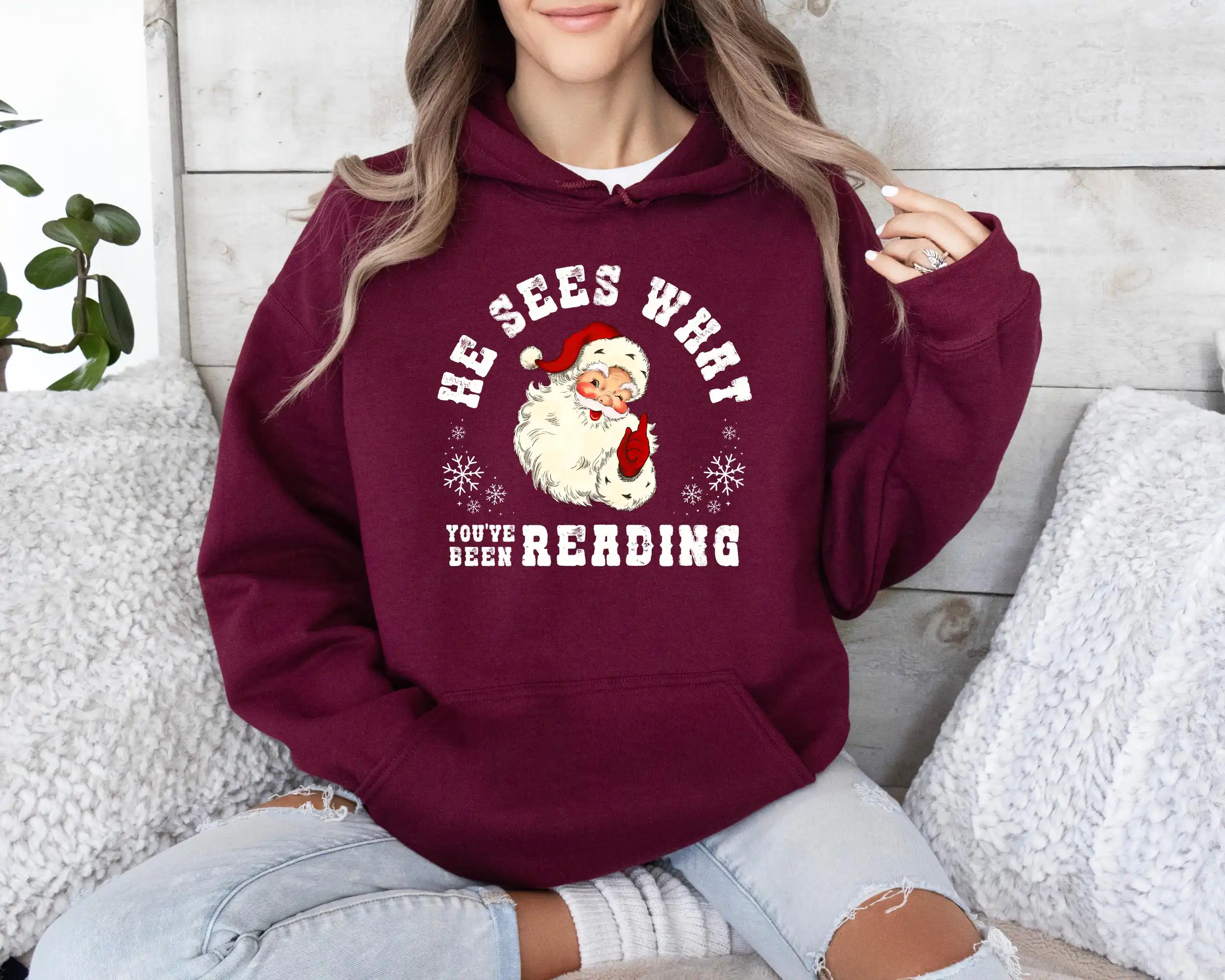 Show off your love for reading this holiday season with the He Sees What You’ve Been Reading Santa Sweatshirt! This funny and festive hoodie features a playful Santa graphic, making it the perfect gift for any book lover. Plus, its soft cotton blend ensures all-day comfort, whether you’re lounging at home or attending a holiday gathering. Get ready to spread some cheer and warmth with this delightful sweatshirt!