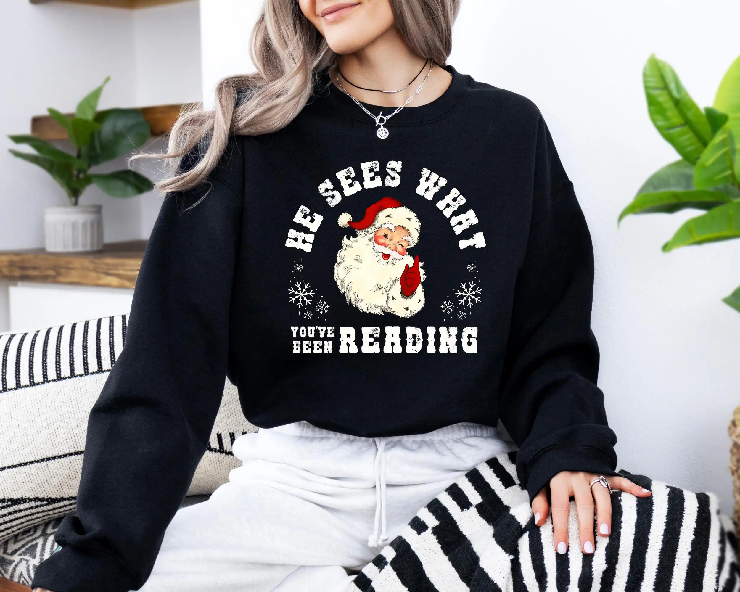 He Sees What You’ve Been Reading Santa Sweatshirt – Funny Xmas Gift