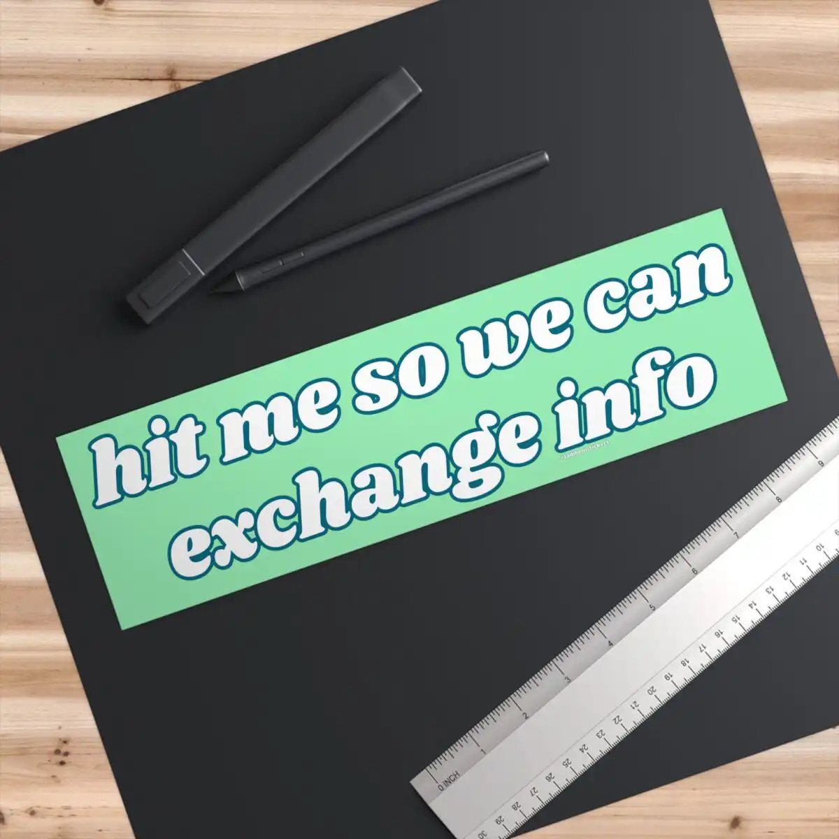 Why This “Hit Me So We Can Exchange Info” Bumper Sticker Is the Perfect Choice for Your Daily Routine