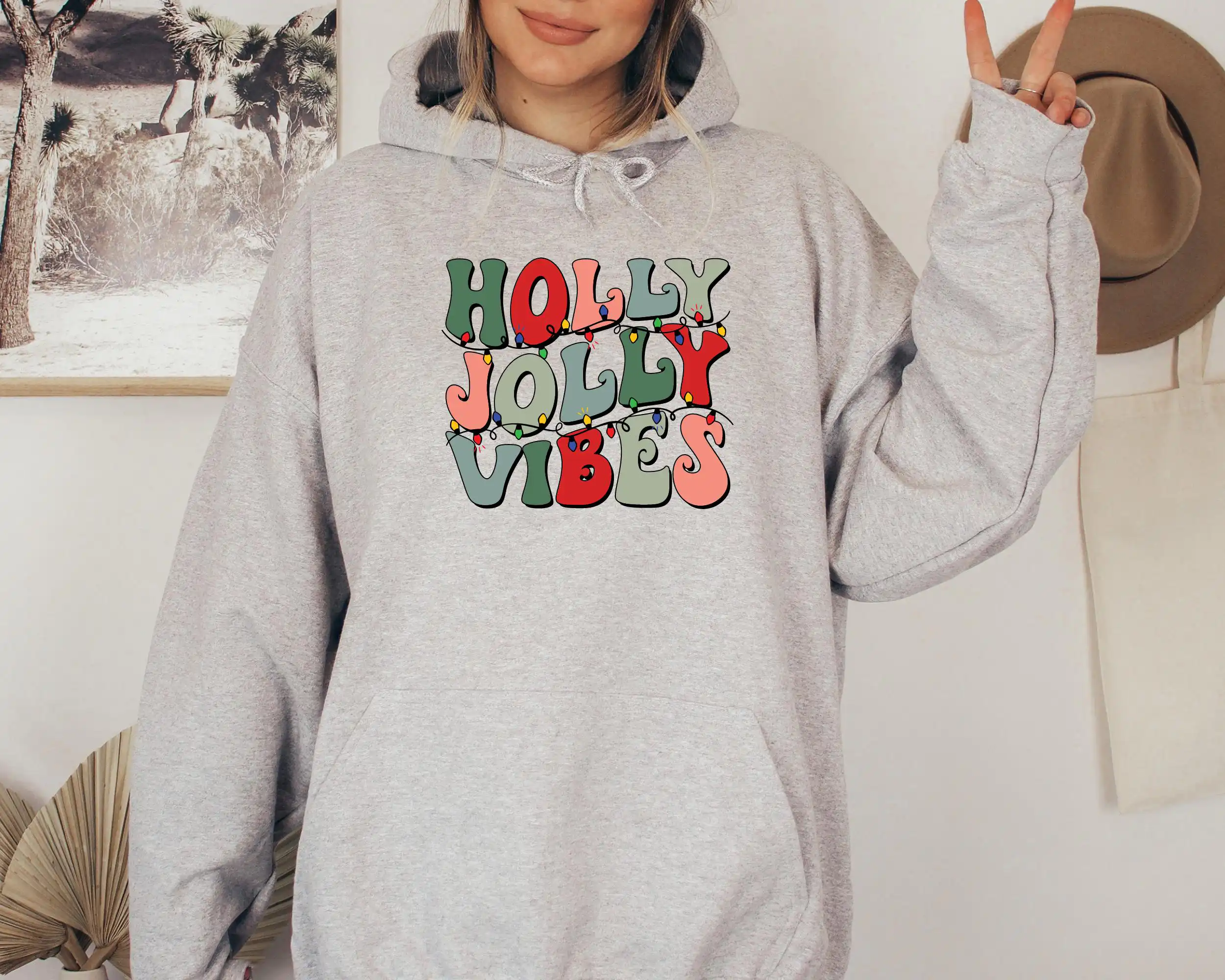 Get ready to embrace the festive spirit with our Holly Jolly Vibes Sweatshirt! This cozy Christmas hoodie features a playful design that’s perfect for winter gatherings or casual outings. Made from ultra-soft cotton, it offers a comfortable unisex fit that looks great on everyone. Plus, it makes a fantastic funny gift idea for friends and family who love to spread holiday cheer! Stay warm and stylish this season with this delightful sweatshirt.