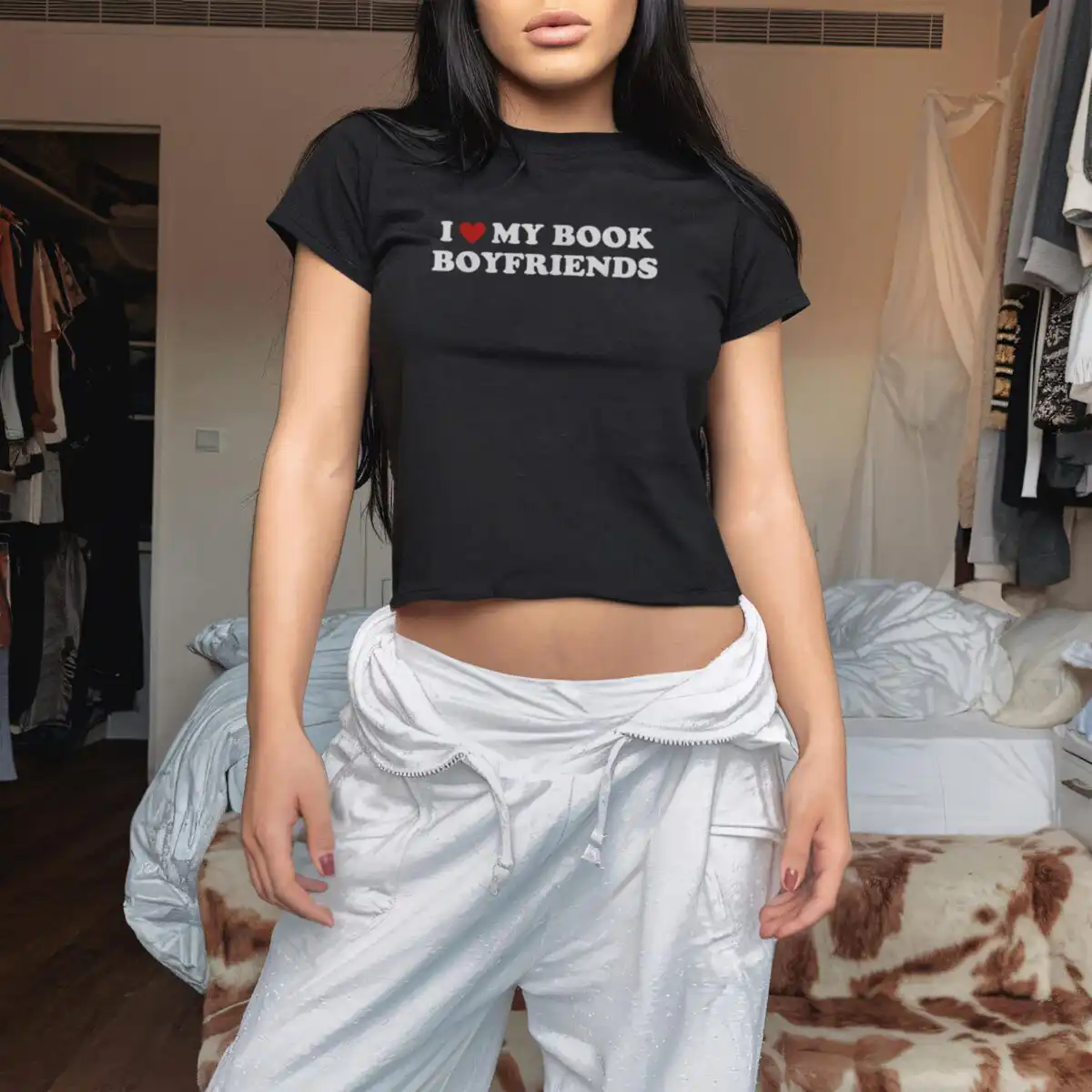 Show off your love for literature with the I Love My Book Boyfriends Retro Y2K Vintage Baby Tee! This cute and funny shirt is perfect for book lovers who want to express their passion in style. Made from a soft fabric blend, it offers a comfortable fit for any occasion. Plus, its charming retro design makes it a standout piece in any wardrobe. Grab yours today and celebrate your favorite fictional characters!