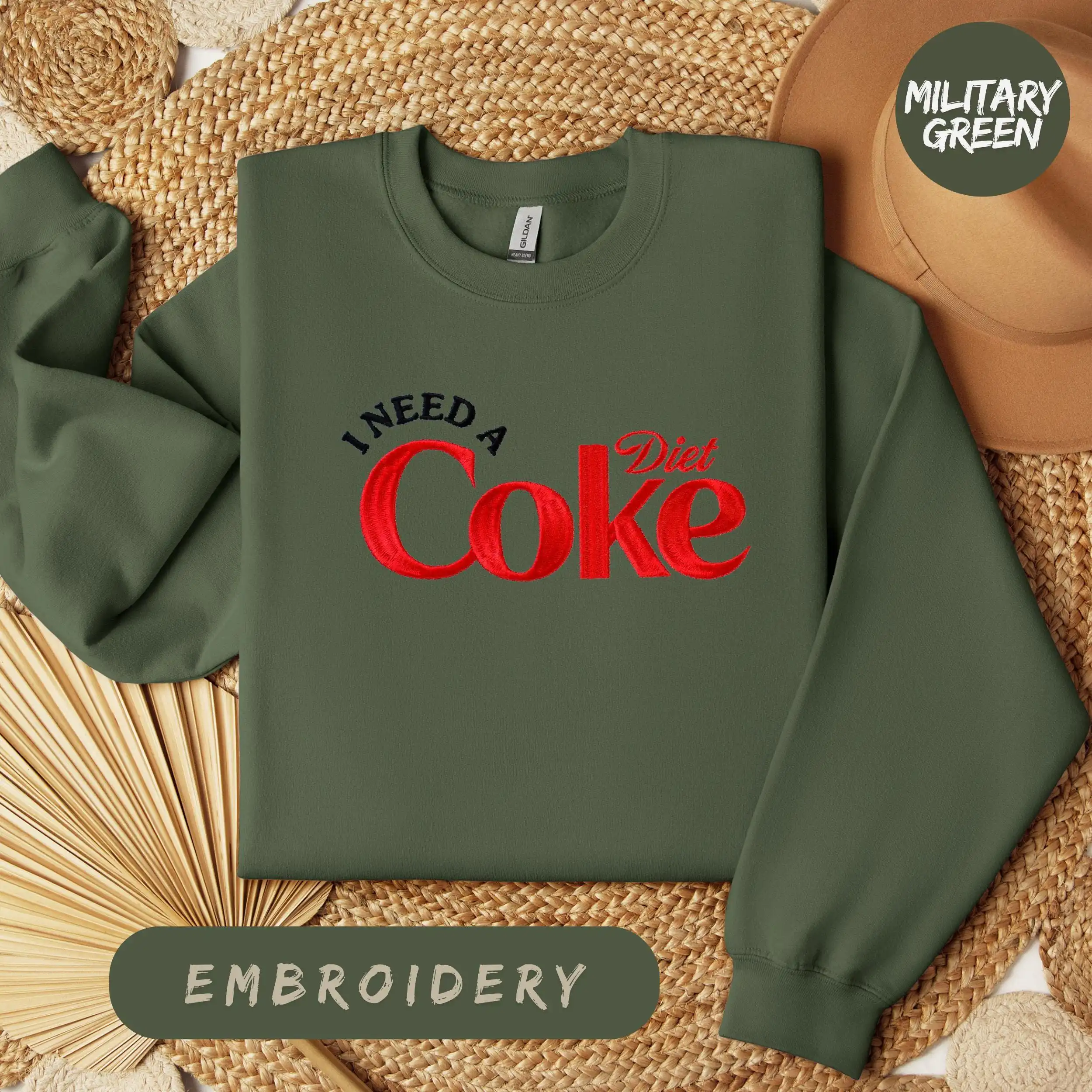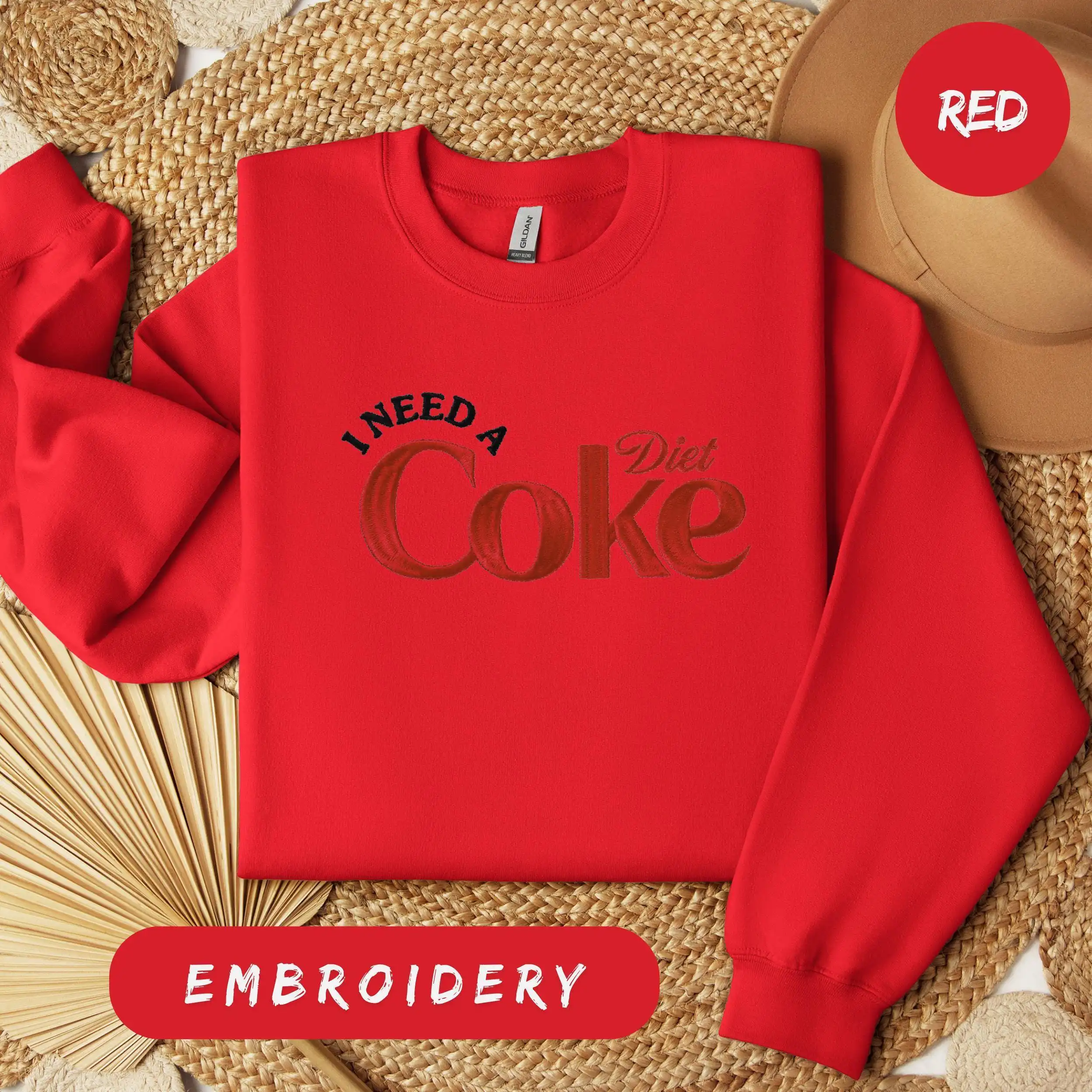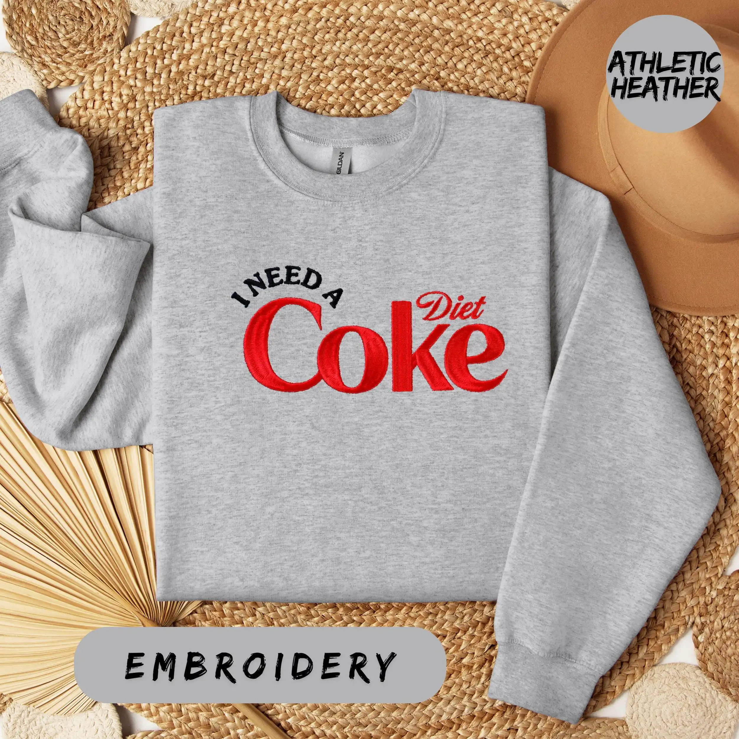 I Need A Diet Coke Sweatshirt – Funny Embroidered Crewneck Pullover