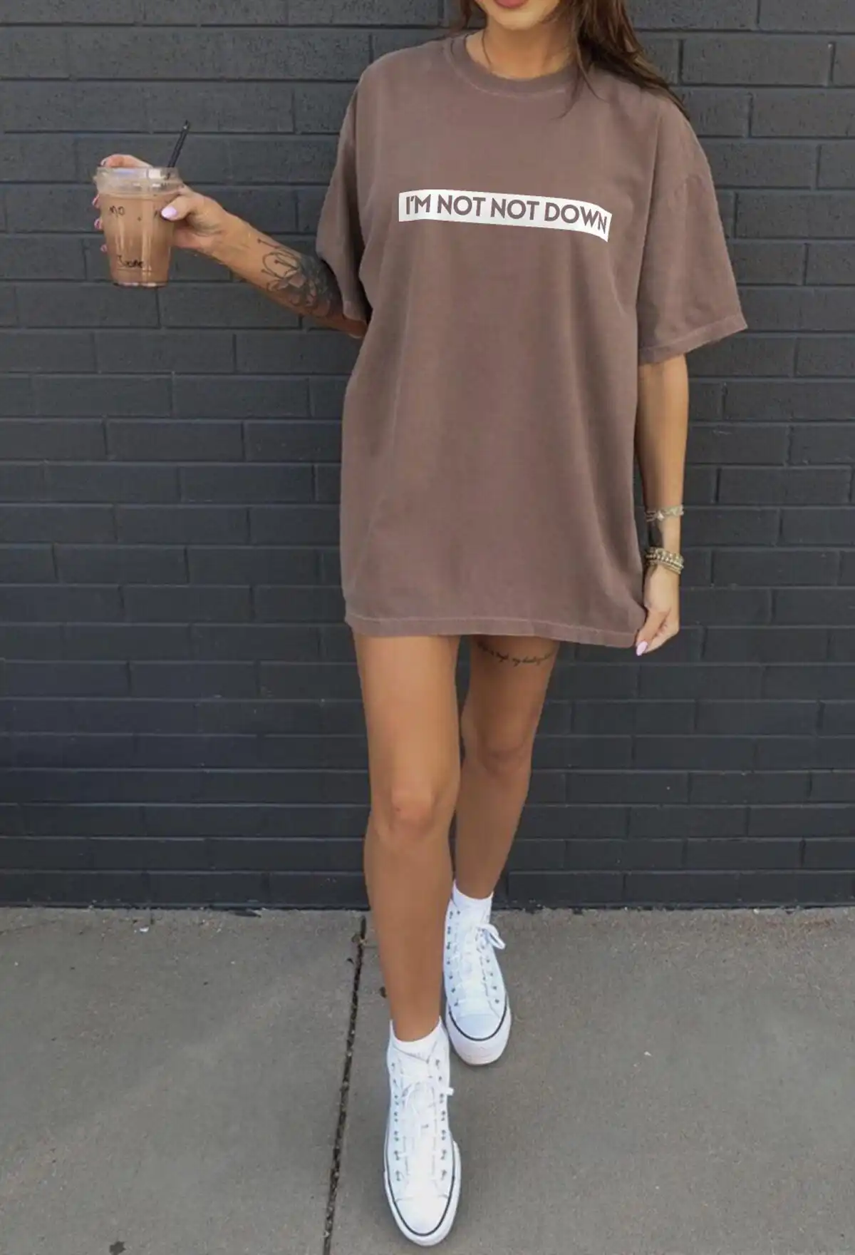 The Im Not Not Down Tshirt features a minimalist design with a witty slogan that’s sure to turn heads. Its clean fit and sarcasm make it ideal for casual outings, whether you’re grabbing coffee with friends or heading out for a night on the town. Moreover, the neutral tones allow for effortless pairing with any outfit, giving you a versatile piece you can wear time and time again.