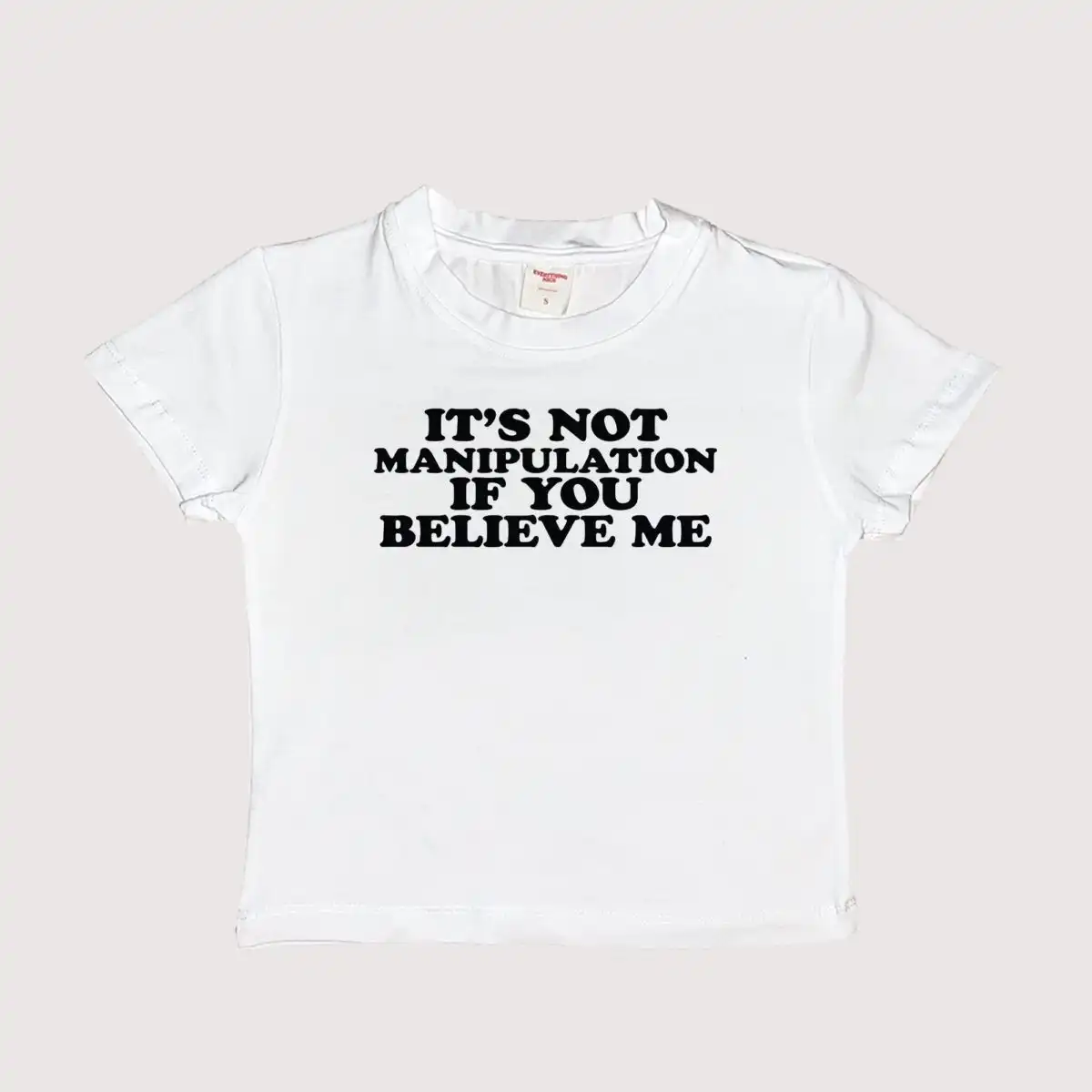 It’s Not Manipulation If You Believe Me Y2K Baby Tee