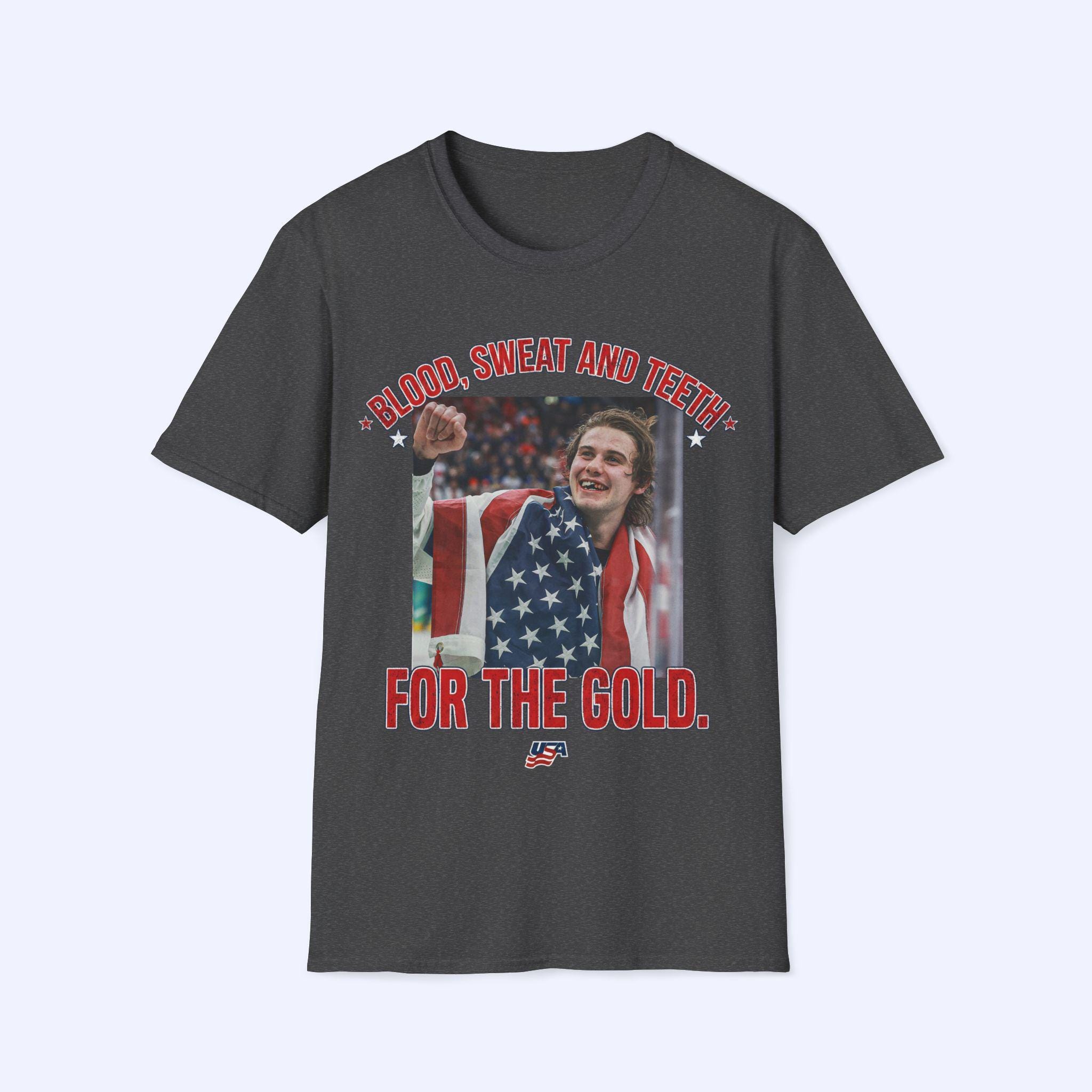 Jack Hughes Olympic Golden Goal Tee – Blood, Sweat, and Teeth Design