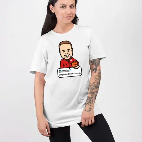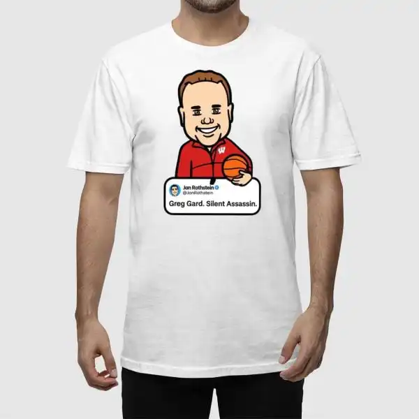In summary, the Jon Rothstein Greg Gard Silent Assassin Shirt is a striking addition to your collection, celebrating the heart of Wisconsin basketball while delivering comfort and style.