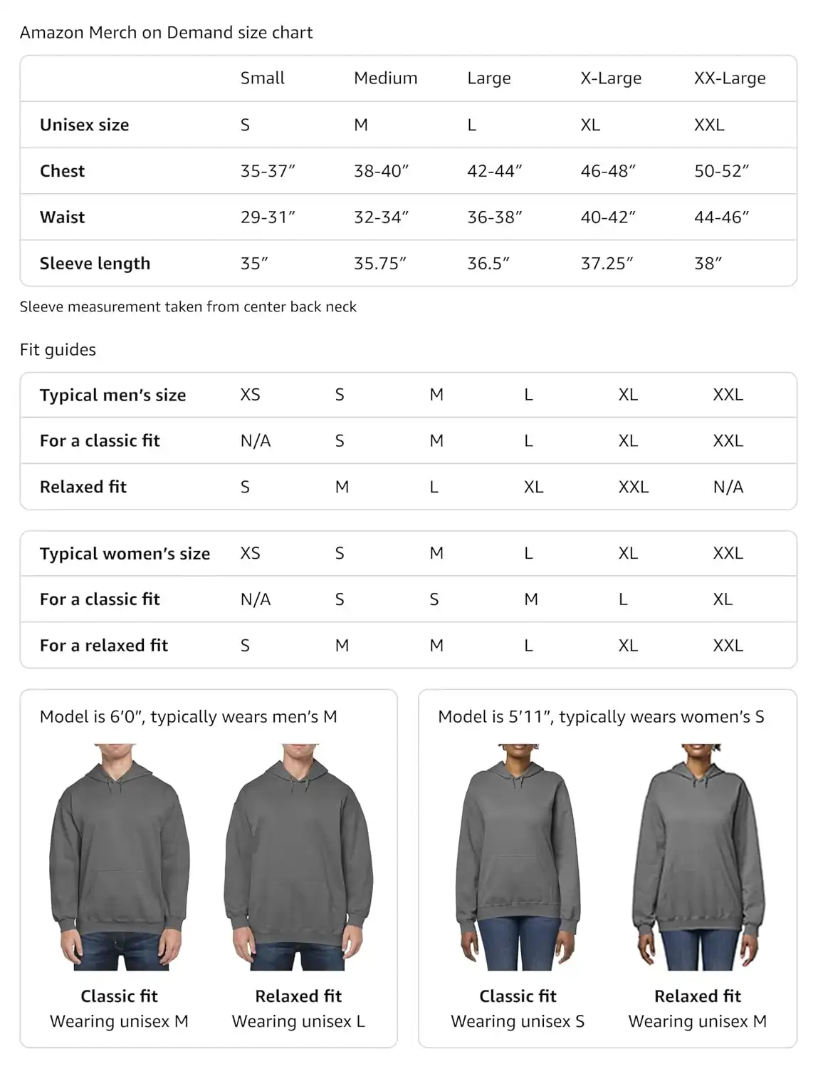 SWEATSHIRT & HOODIE SIZE GUIDE