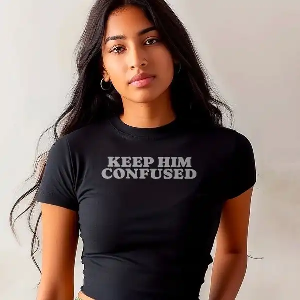 This is your collector’s badge. The Keep Him Confused Micro Rib Baby Tee is not simply clothing. It is a declaration of confidence, wit, and irreversible cool. Furthermore, it belongs in every curated wardrobe that values both humor and high style. Secure yours now. Add it to your cart before it becomes the piece everyone wishes they had first.