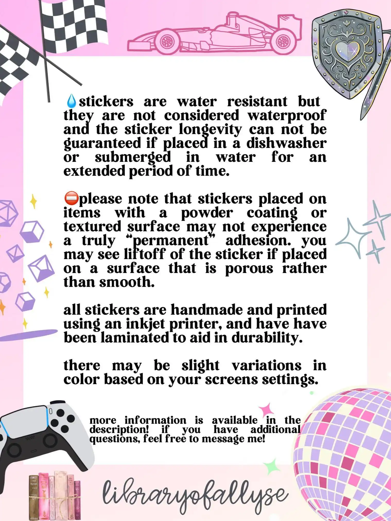 - Strong adhesive backing that sticks securely to laptops, bottles, cars, windows, and more