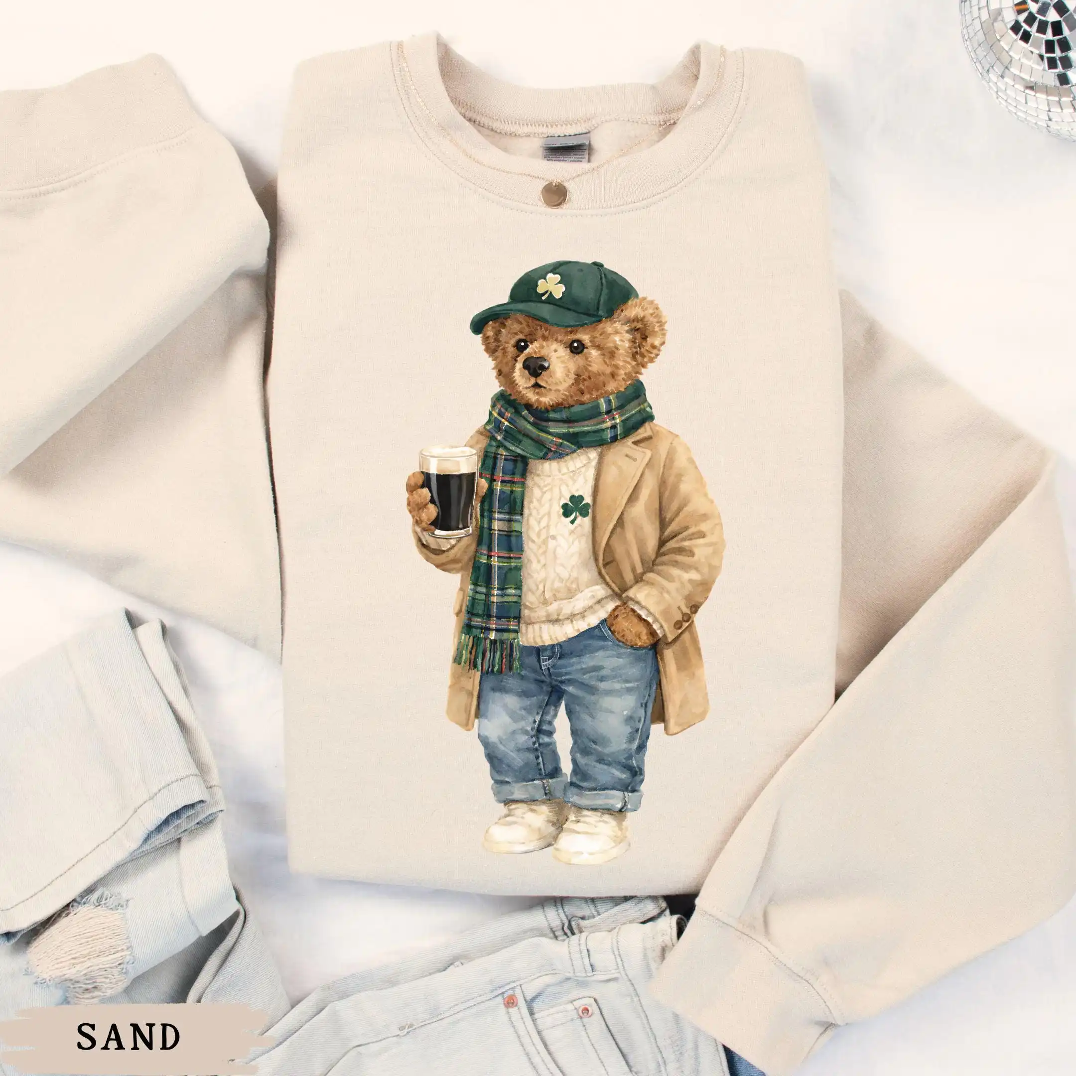 The Lucky Teddy Bear St Patricks Day Sweatshirt features a chic, preppy teddy bear holding a classic Irish stout, beautifully complemented by a subtle plaid design. This sweatshirt captures the spirit of St. Patrick’s Day while ensuring you look effortlessly fashionable. Whether you’re gearing up for a pub crawl or simply enjoying a laid-back day with friends, this piece adds a touch of whimsy to any outfit.