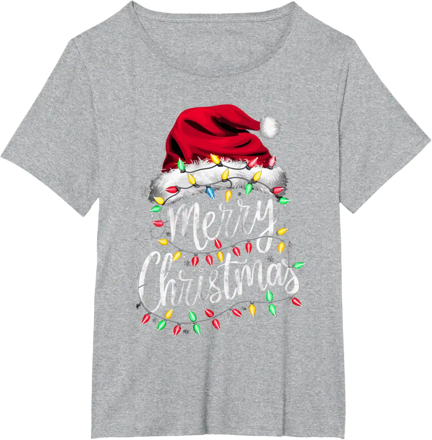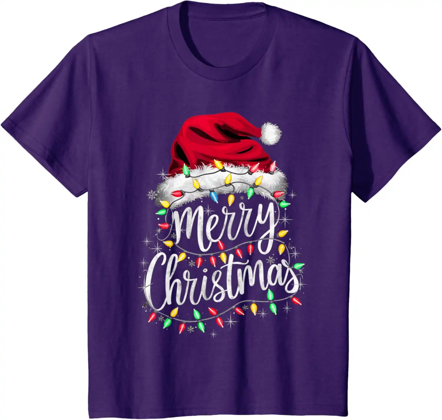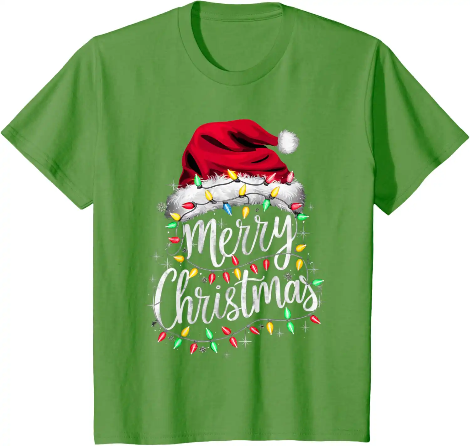 Merry Christmas Lights Santa Hat Tee – Fun Holiday Family Shirt