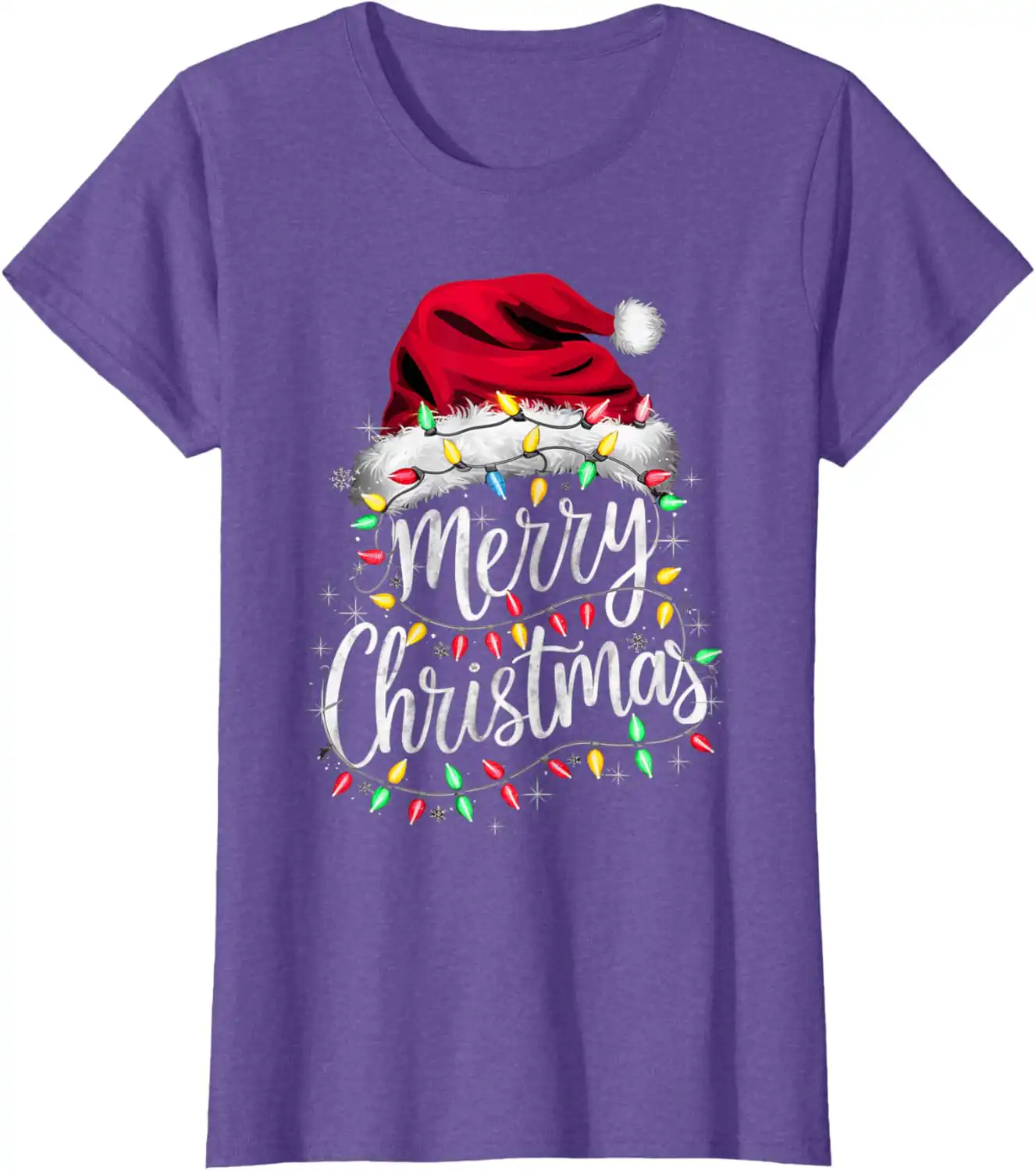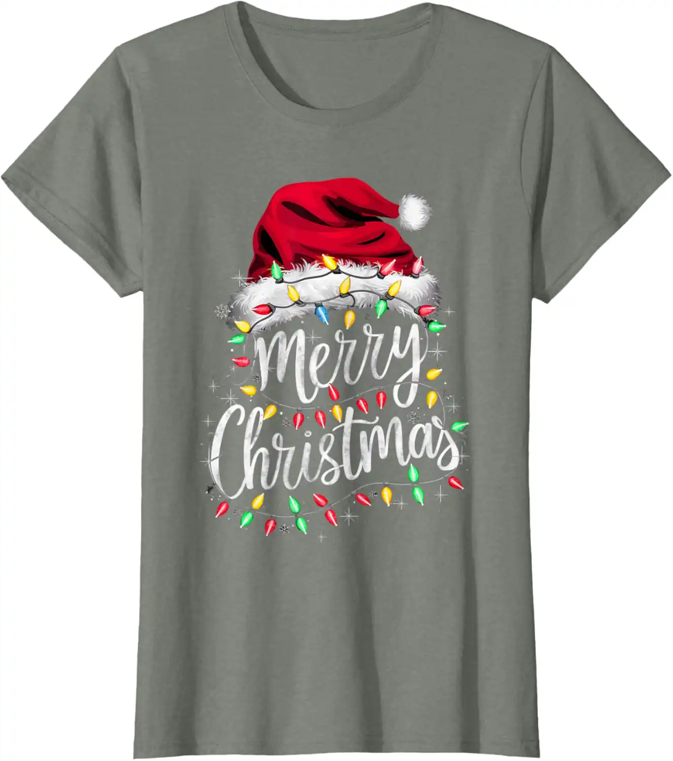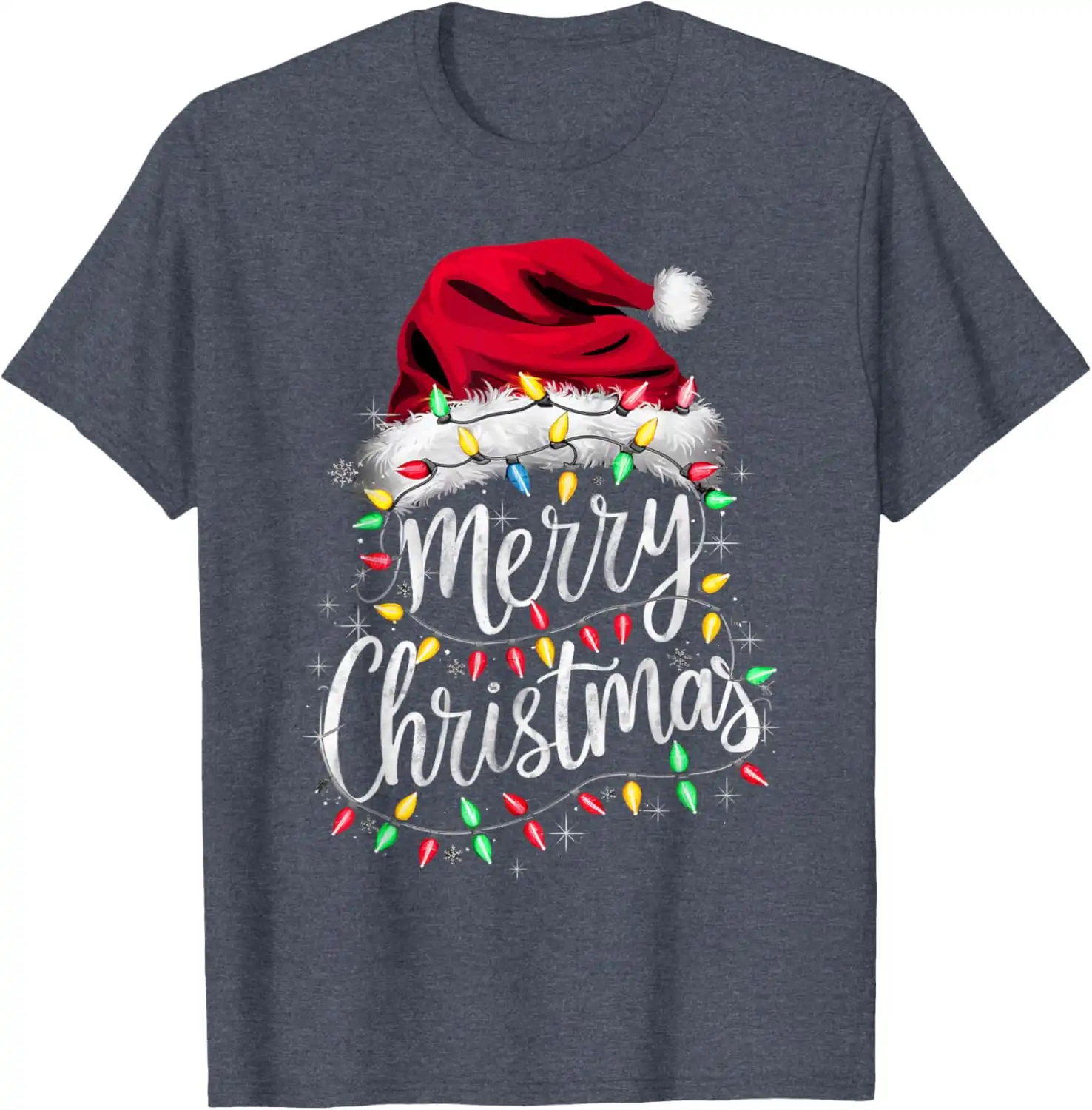 Merry Christmas Lights Santa Hat Tee – Fun Holiday Family Shirt