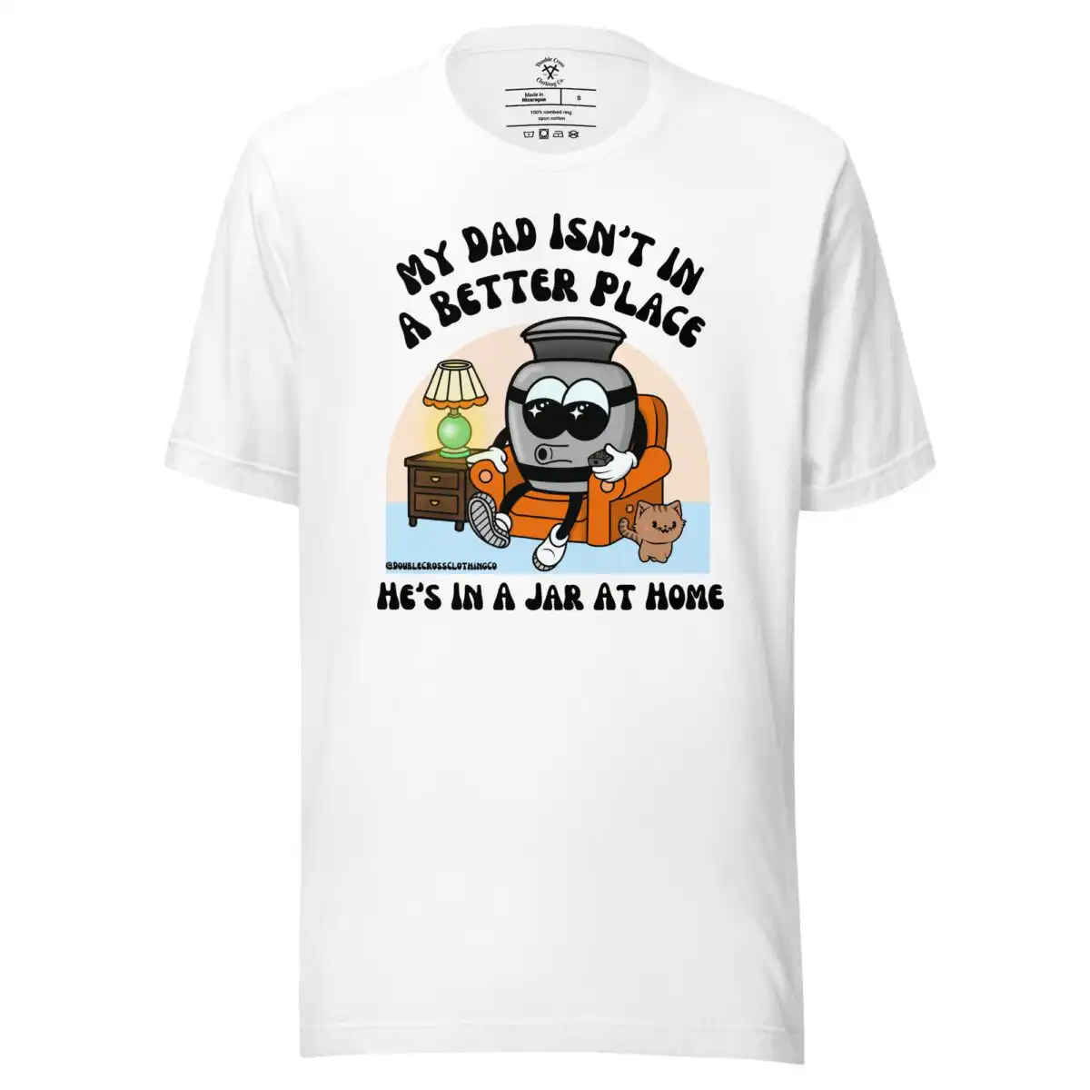Introducing the My Dad Isn’t In A Better Place T-Shirt, a unique piece that combines humor and a touch of irony for those who appreciate a bit of dark wit. This shirt is perfect for anyone wanting to express themselves playfully, while also making a statement about life and loss.