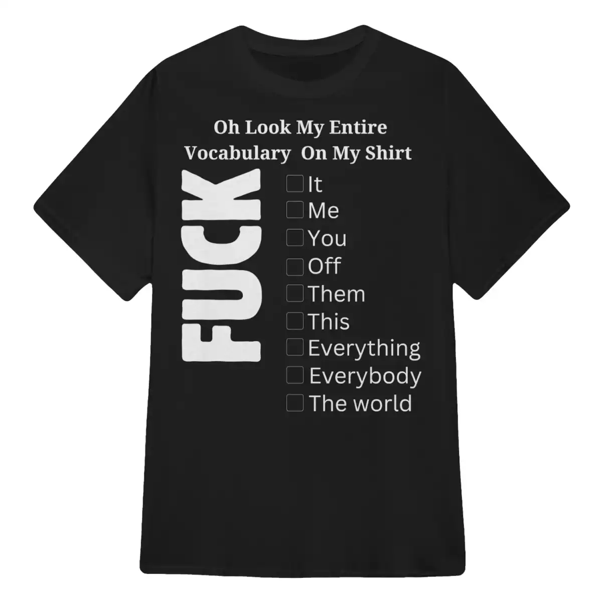 Oh look, my entire vocabulary on my shirt is a unique piece that speaks volumes about your personality. This tee is not just a fashion statement; it’s a way to express yourself without uttering a single word. Made for those who appreciate both style and wit, this shirt is a conversation starter.