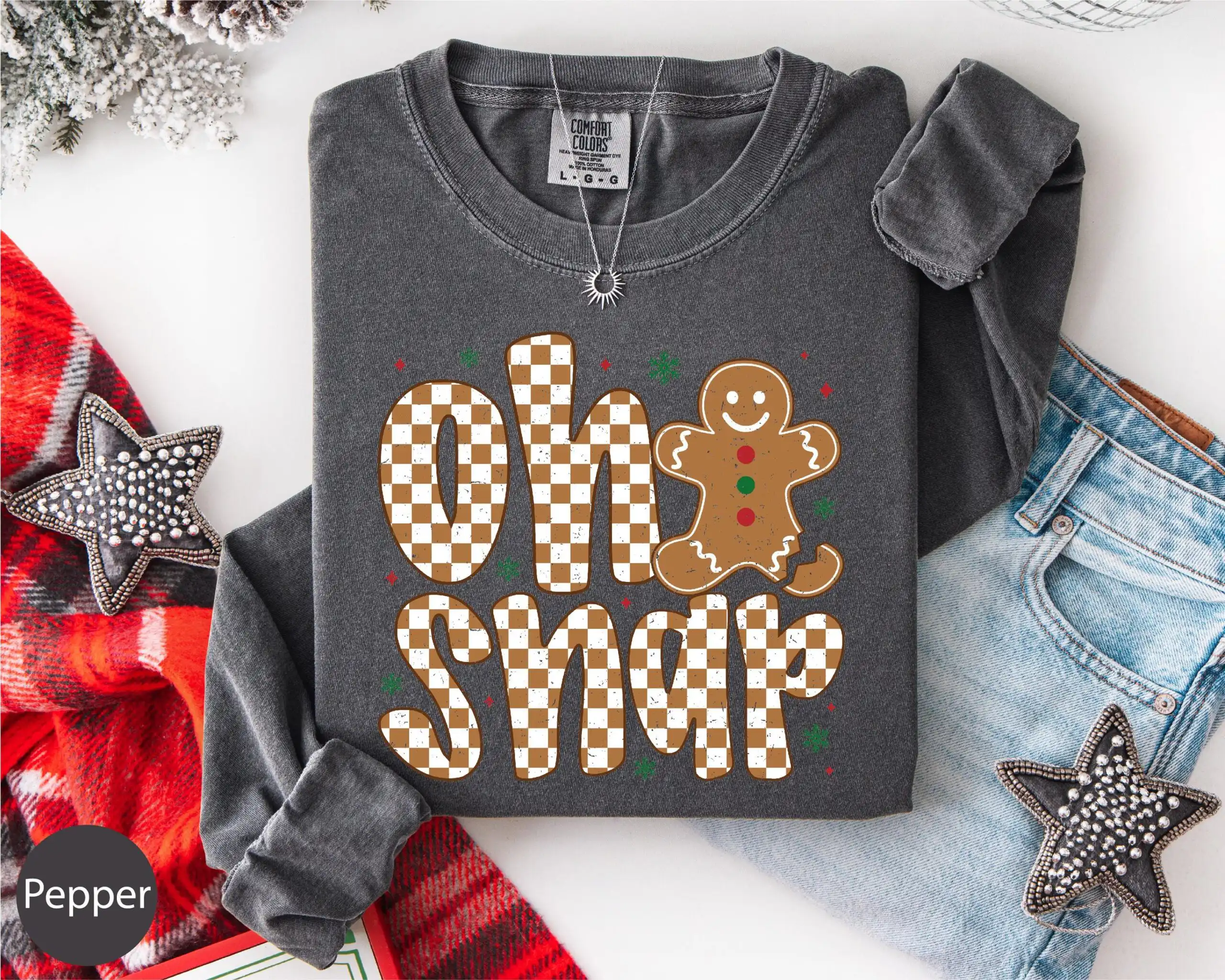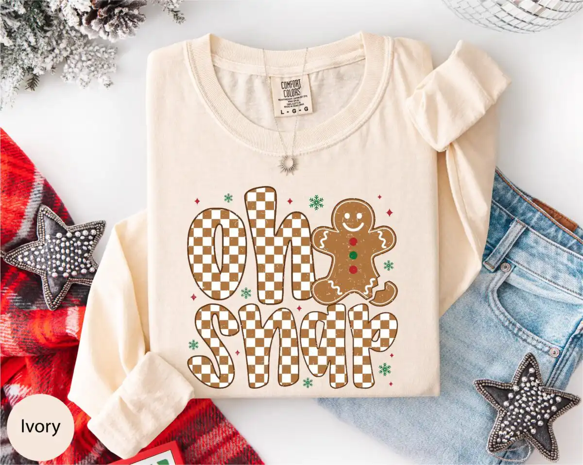 Celebrate the season with the Comfort Colors® Oh Snap Long Sleeve Shirt, Checkered Gingerbread Shirt, Christmas Baker Shirt, Funny Christmas Long Sleeve. It’s not just a shirt; it’s a fun way to express your personality and enjoy the festive moments.
