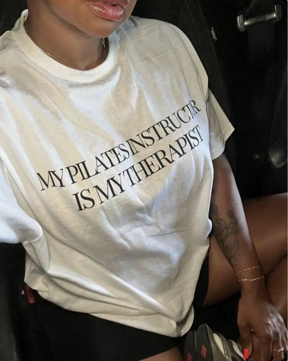 With its minimalist design and witty quote, this shirt speaks to anyone who finds solace in their Pilates sessions. The phrase “My Pilates Instructor Is My Therapist” captures a sentiment we all share: the mental clarity and emotional relief that comes from a good workout. This tee is not just clothing; it’s a reminder of the safe space that reformer classes provide.