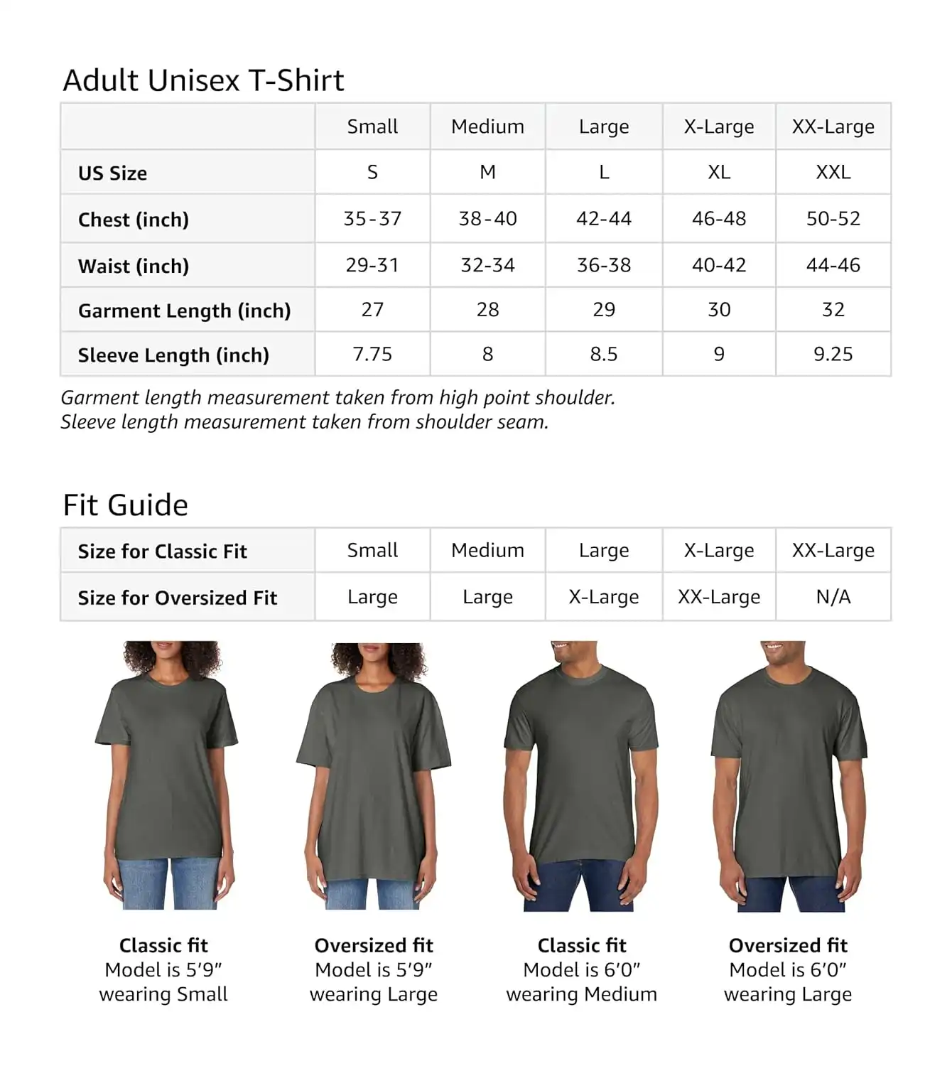 UNISEX T-SHIRT SIZE GUIDE
