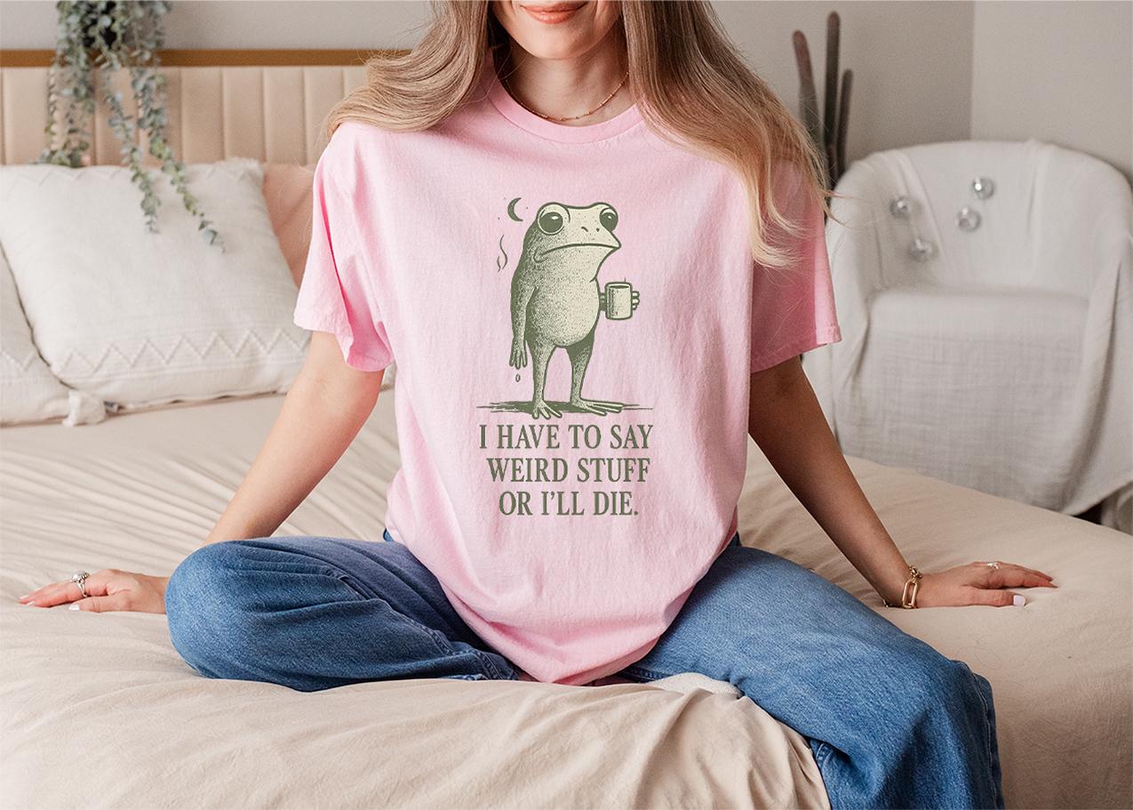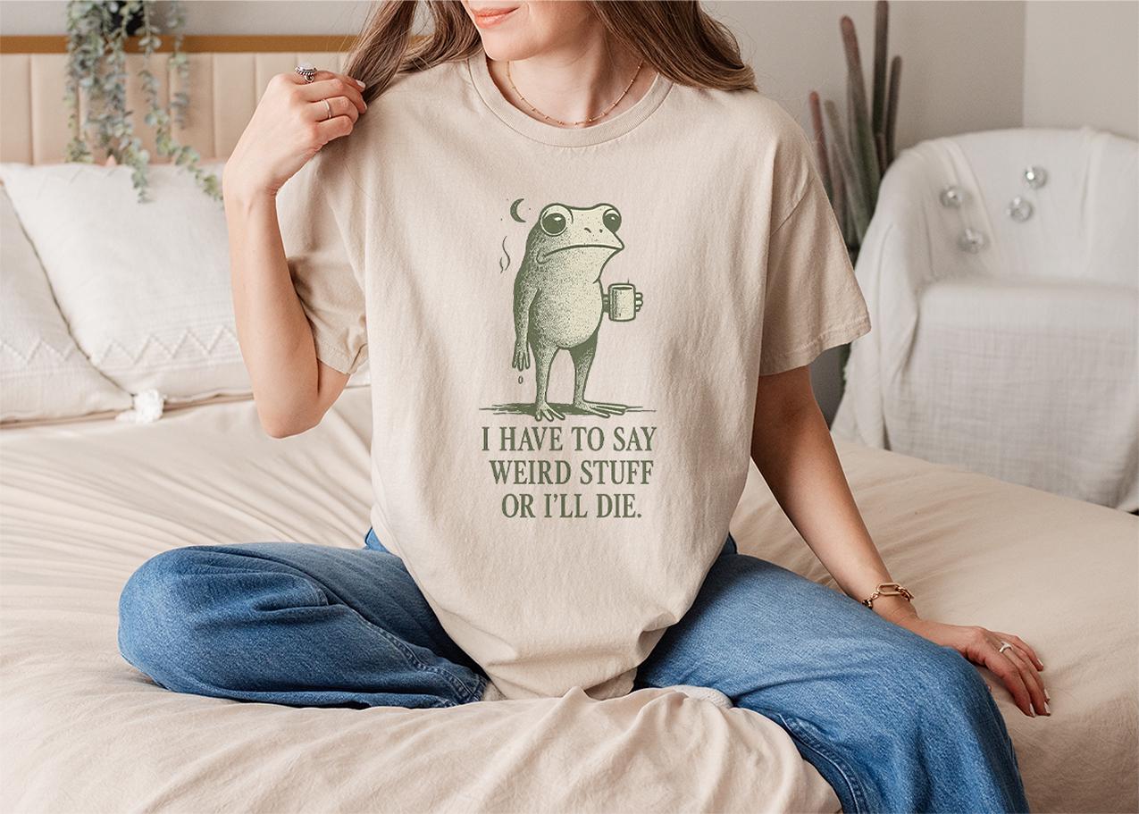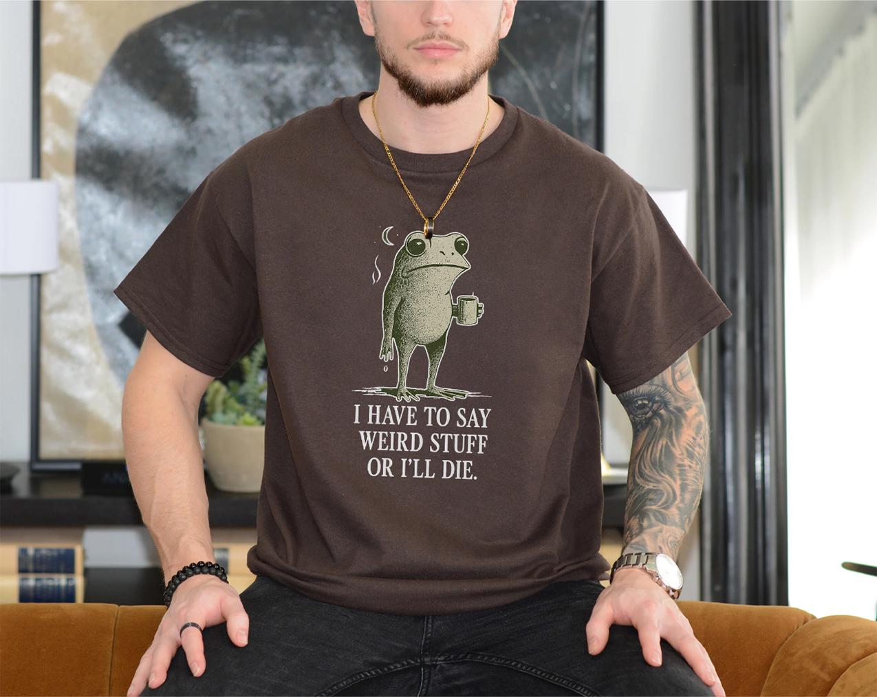 Introducing the Quirky Frog Meme Tee – ‘I Have to Say Weird Stuff or I’ll Die’ Retro Humor Shirt for Meme Lovers, Funny Shirt, Shirt For Men! This playful tee adds a splash of humor to your wardrobe, making it a must-have for anyone who enjoys a good laugh and a unique style. Perfect for meme enthusiasts, this shirt combines retro vibes with modern comfort, ensuring you stand out wherever you go.