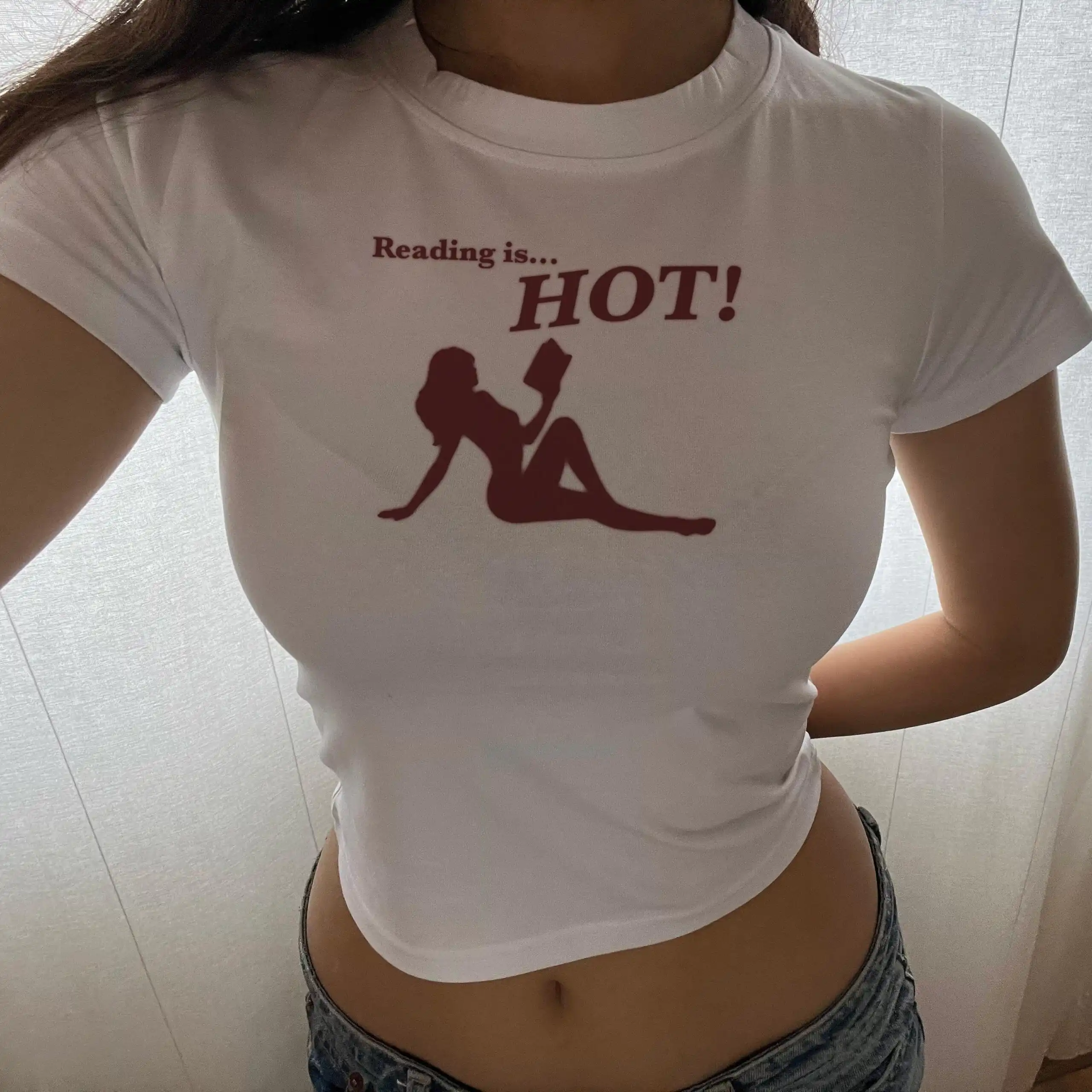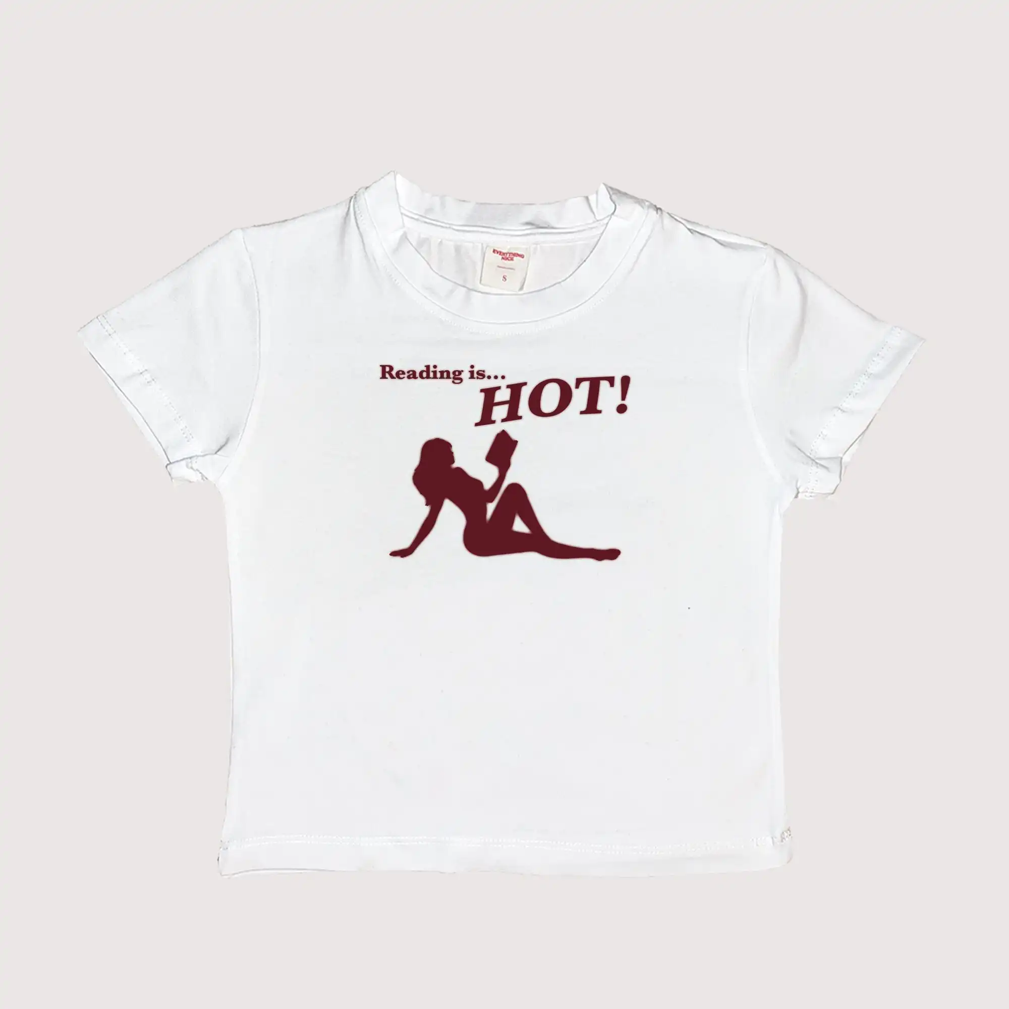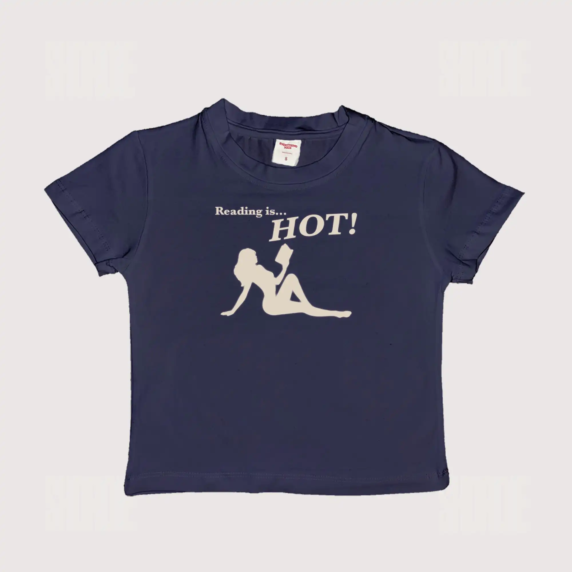 Reading Is Hot Baby Tee: Y2K Graphic Cotton Blend Shirt – A 2026 Style Artifact