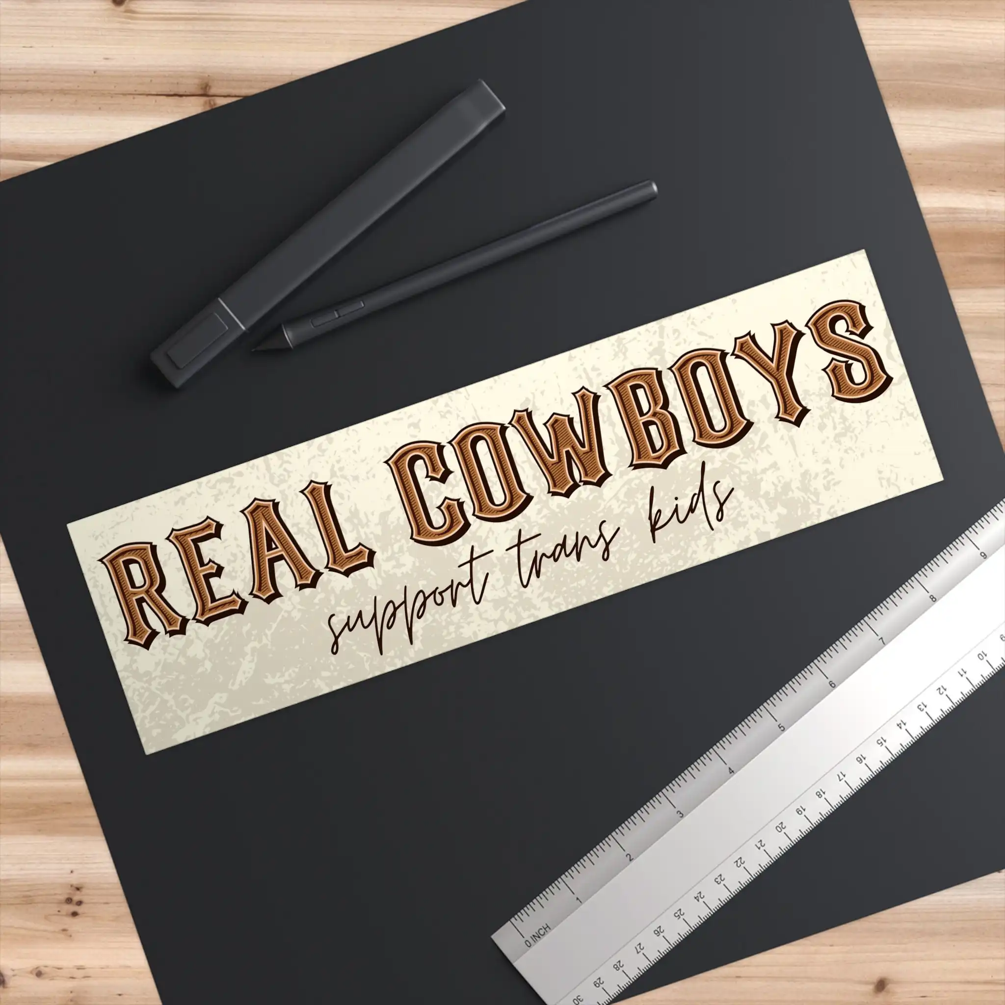 Real Cowboys Support Trans Kids Bumper Sticker – Durable Vinyl Design