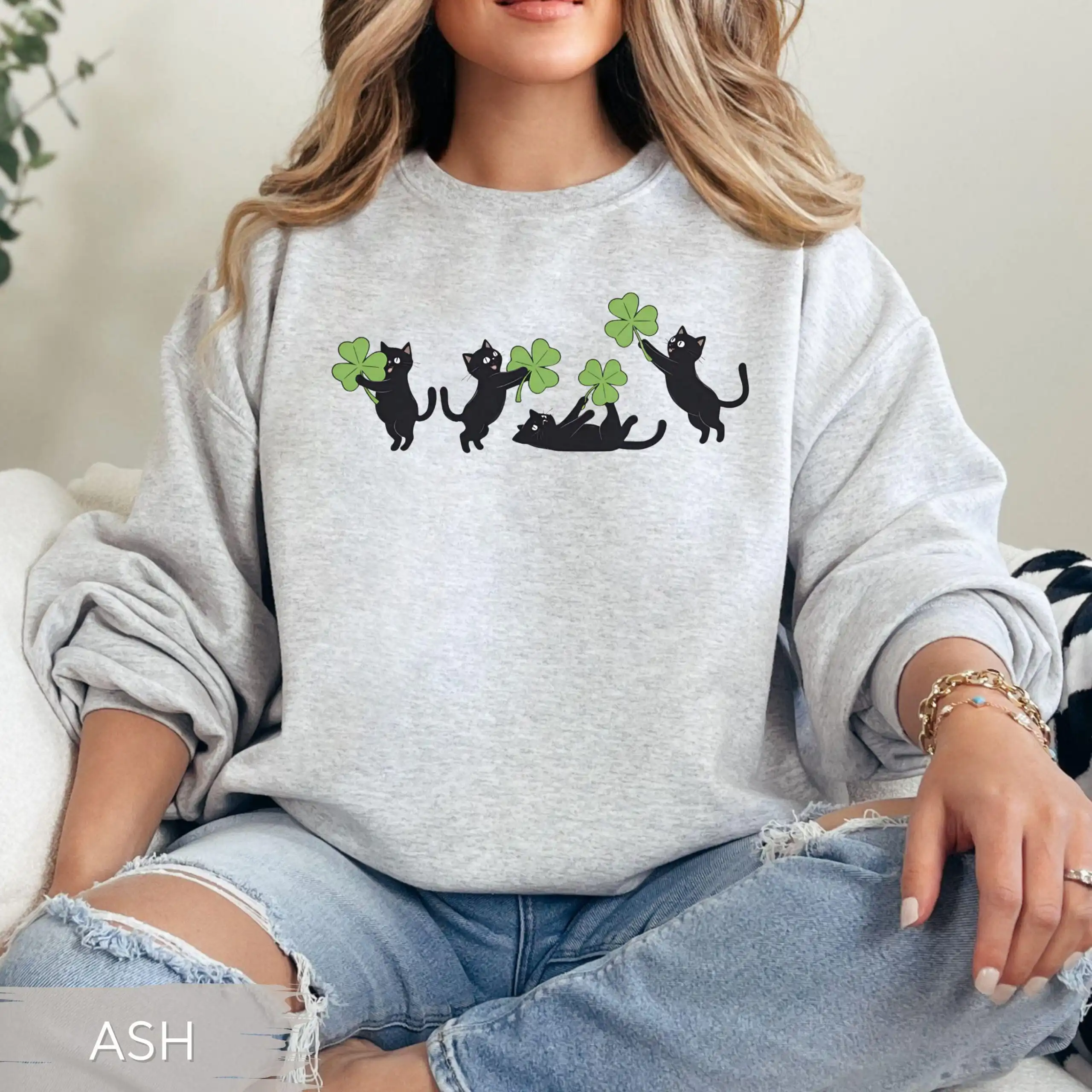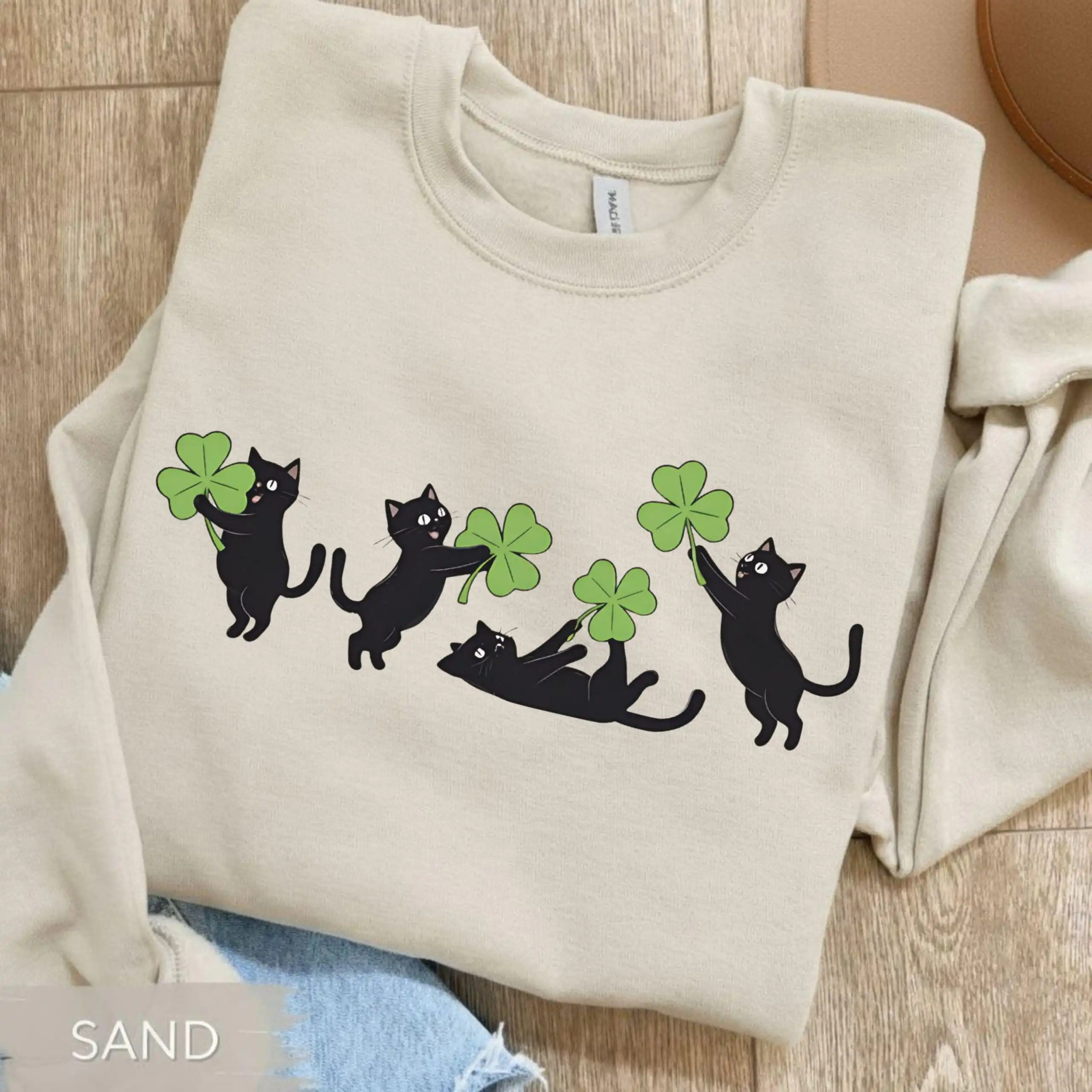 This sweatshirt captures the spirit of St. Patrick’s Day with its enchanting illustration of black cats frolicking among shamrocks. The design is not only festive but also exudes a fun and carefree vibe, making it a must-have for anyone who enjoys the holiday. Moreover, its cozy fabric ensures that you stay comfortable while celebrating, whether at home or out and about.