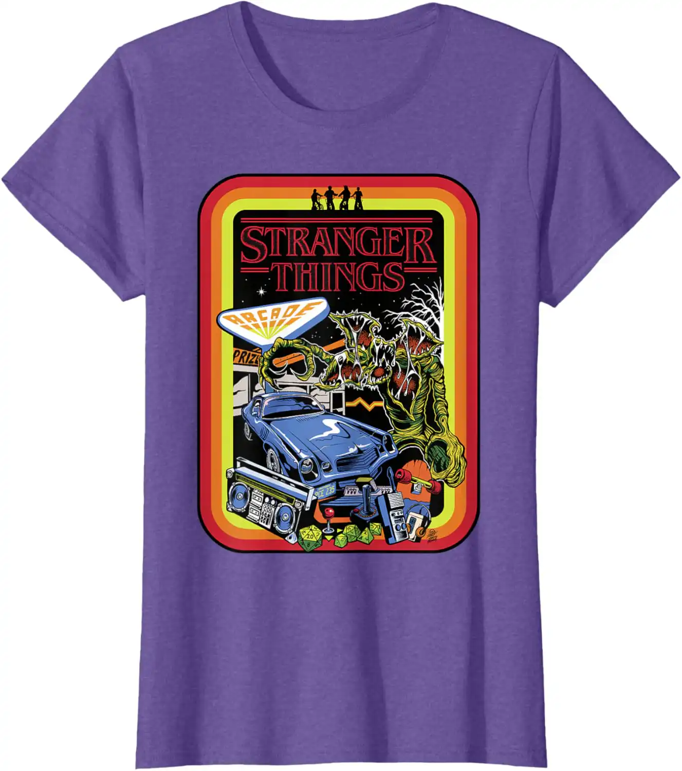 This shirt features a vibrant retro design that captures the essence of the beloved show. The striking graphics pop against the classic black fabric, making it a statement piece whether you’re at a fan convention or simply hanging out with friends. Moreover, the lightweight fabric ensures you stay comfortable while showcasing your love for all things Stranger Things.