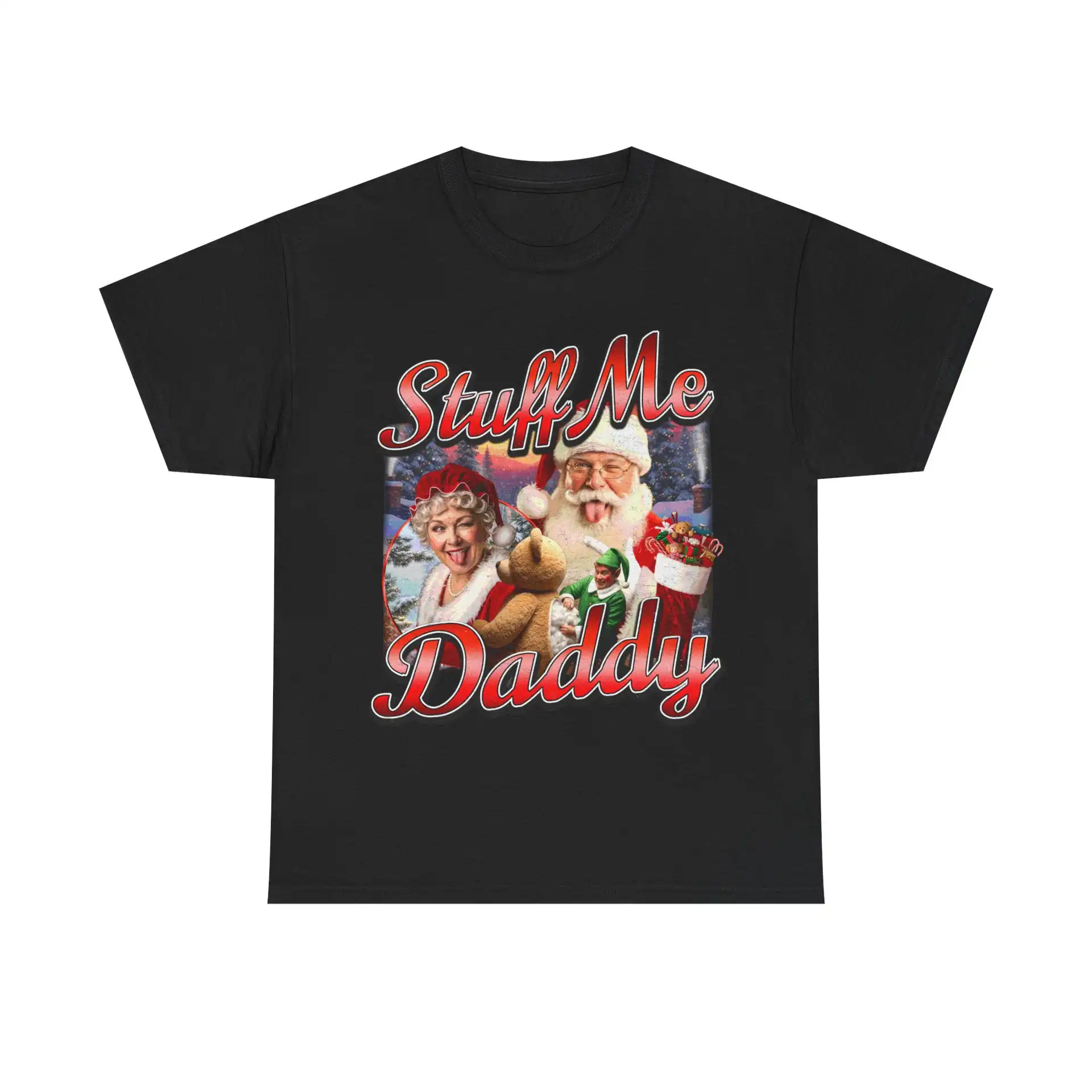 Step into the festive spirit with the STUFF ME DADDY SHIRT, a playful and eye-catching tee that adds a cheeky twist to your holiday wardrobe. With its vintage-inspired design featuring Santa and Mrs. Claus, this shirt is not just a piece of clothing; it’s a conversation starter that brings smiles and nostalgia wherever you go.