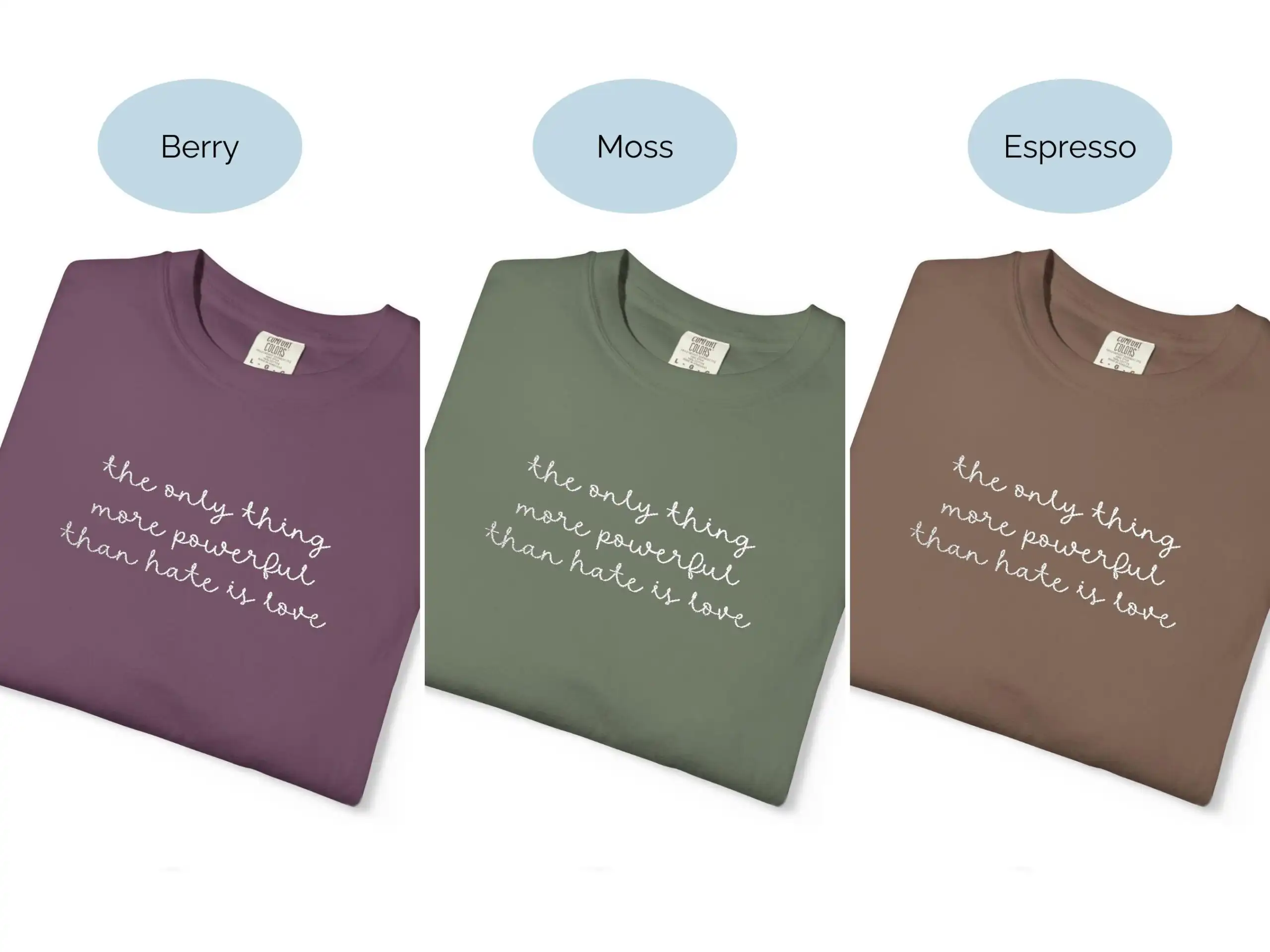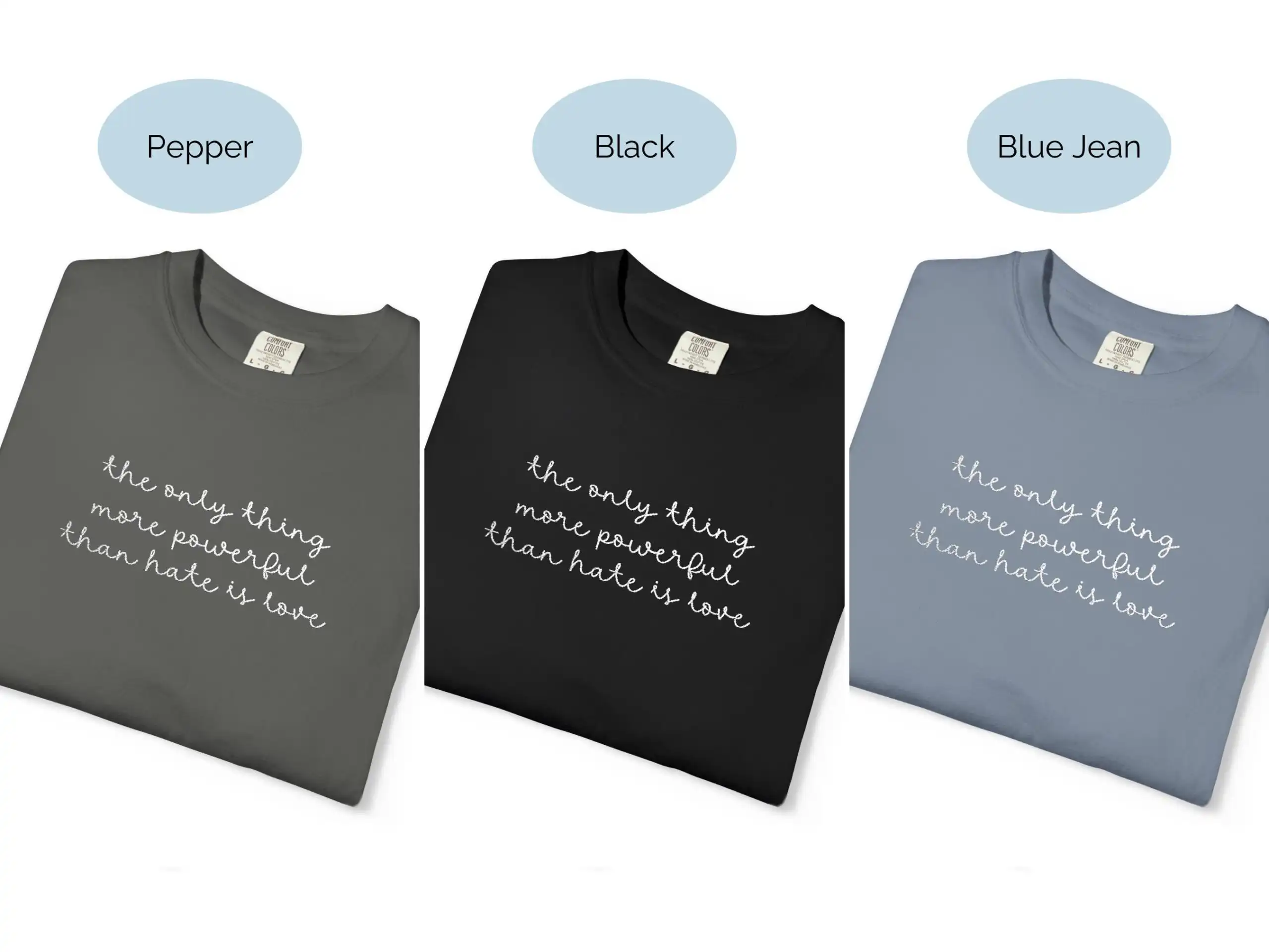 In conclusion, The Only Thing More Powerful Than Hate Is Love: Embroidered Comfort Colors Shirt, Social Justice Tee is more than just a piece of clothing; it’s a statement. Embrace love, advocate for change, and add this essential tee to your collection today!
