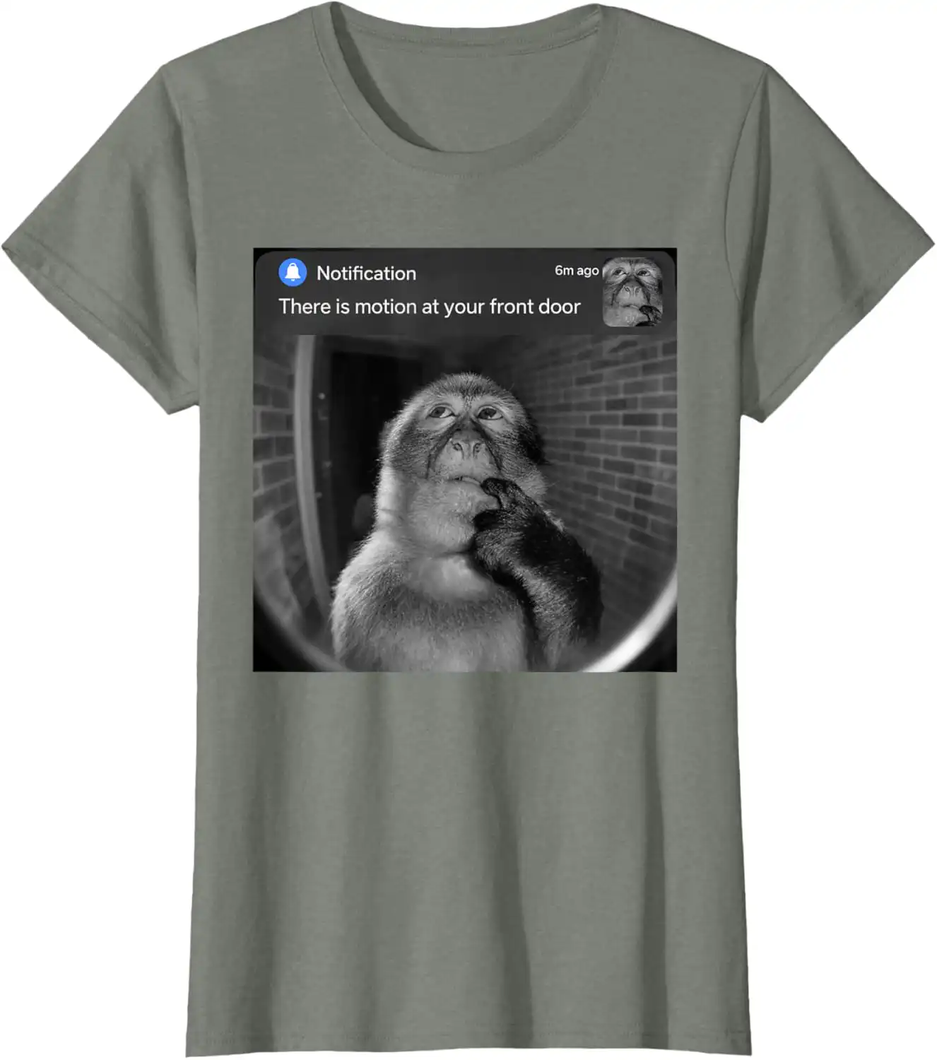 Thinking Monkey There is Motion at Your Front Door Meme T-Shirt – A 2026 Style Artifact