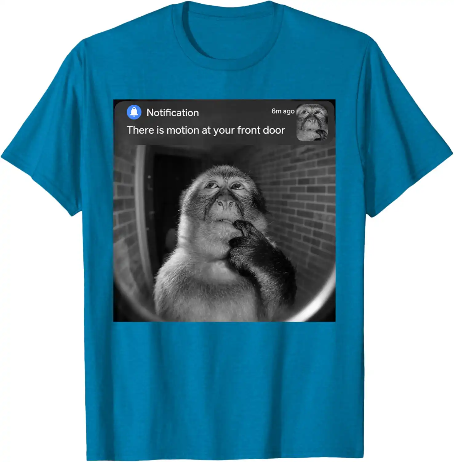 - Graphic Precision: The Thinking Monkey There is Motion at Your Front Door Meme T-Shirt features crisp, high-definition print quality that holds its integrity wash after wash.