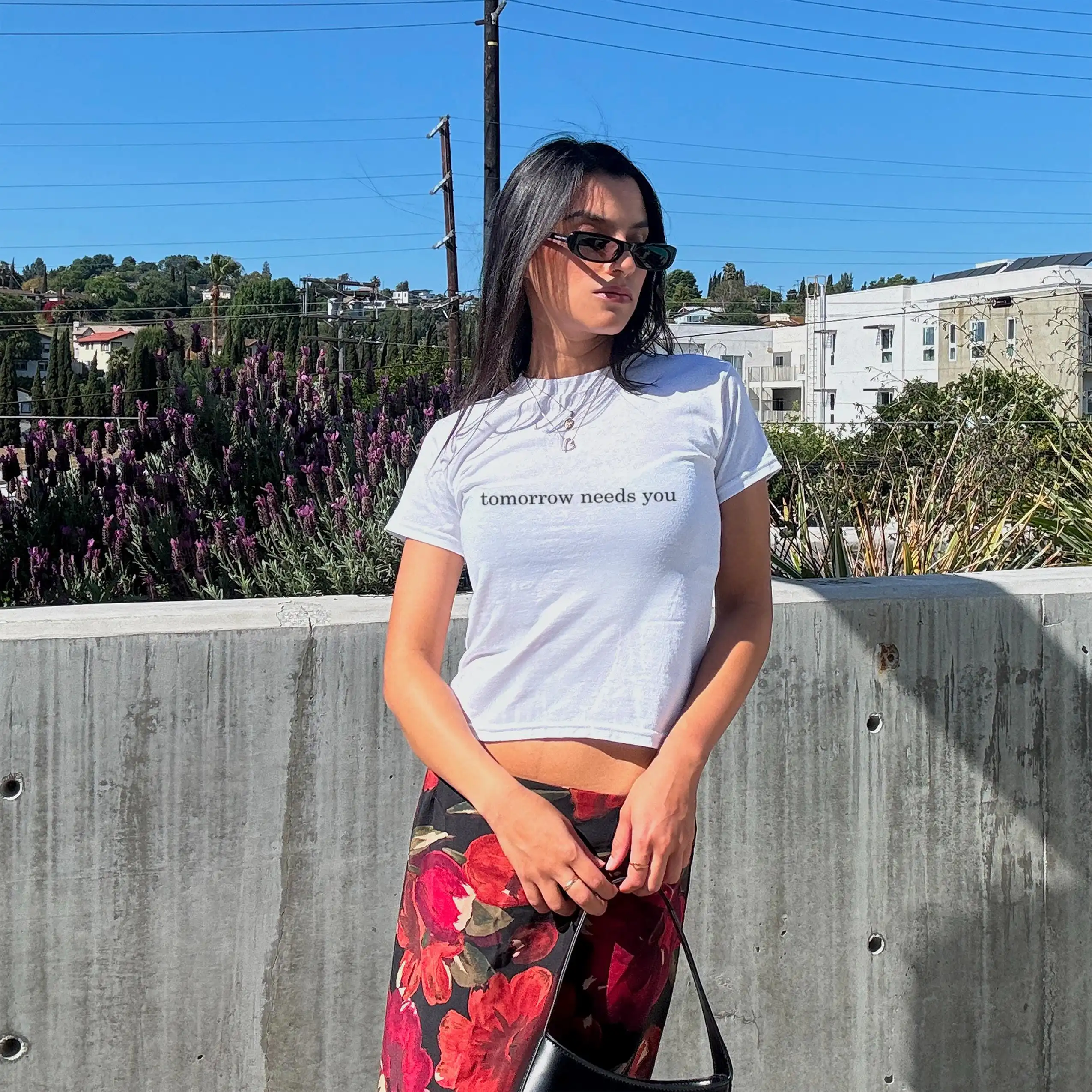 Tomorrow Needs You Daisy Baby Tee – Uplifting Graphic Shirt