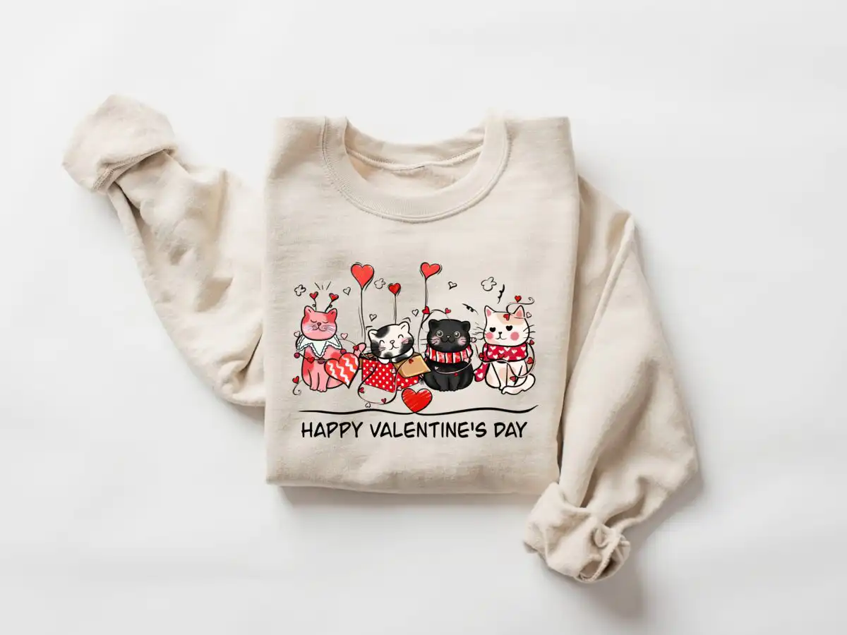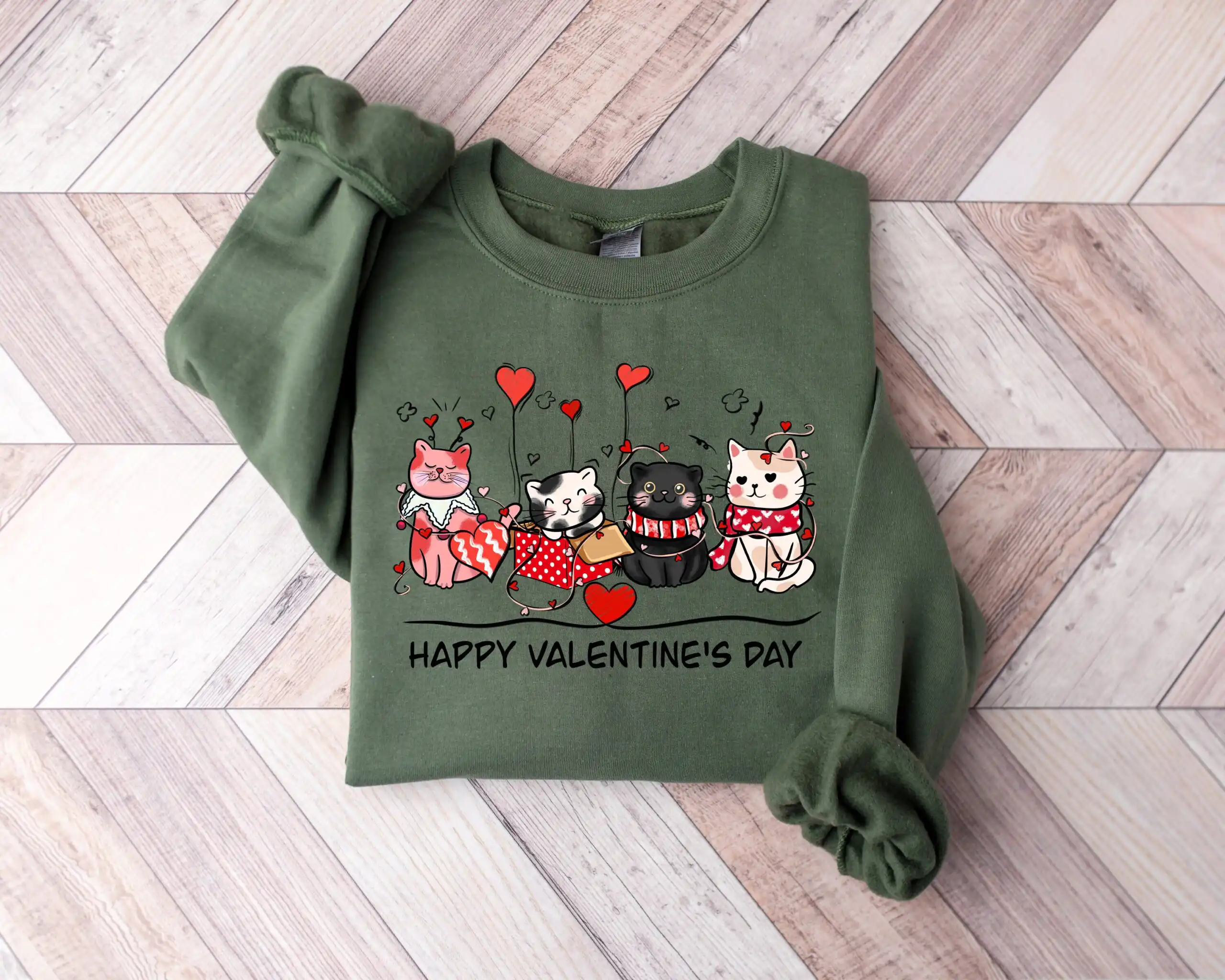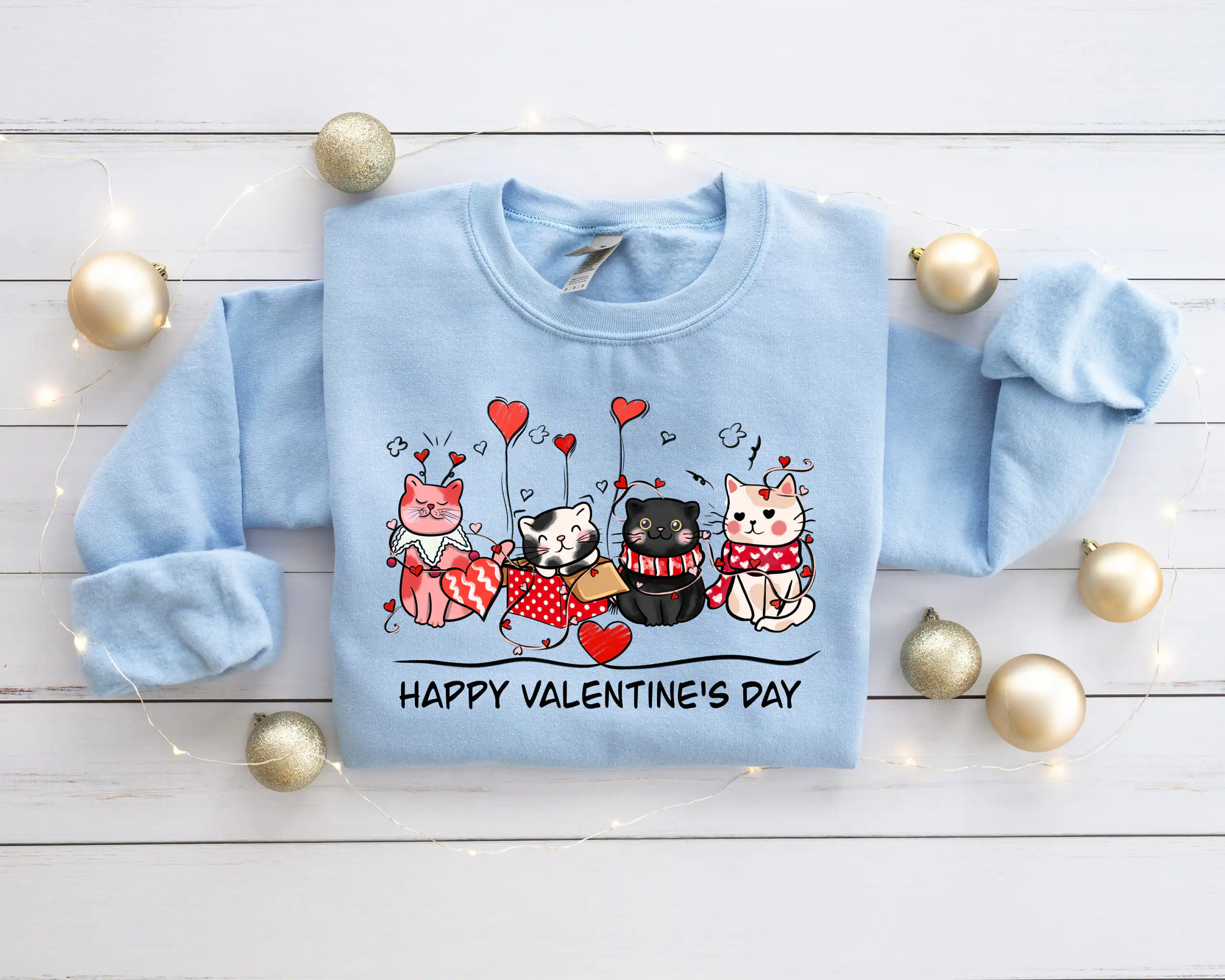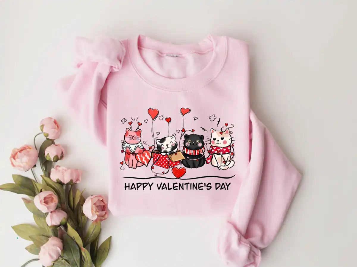 Valentine’s Cat Lover Sweatshirt – Cute Gift for Her
